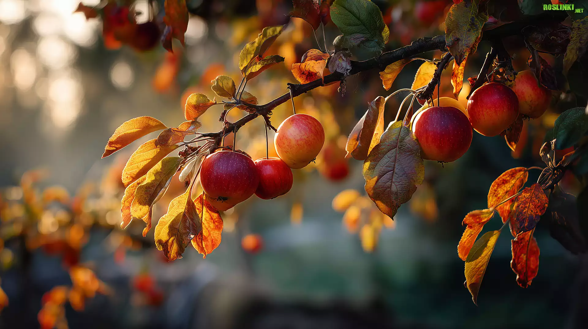 Rośliny: Czerwone, Jabłka, Gałązka, Jesienne, Liście, Grafika AI