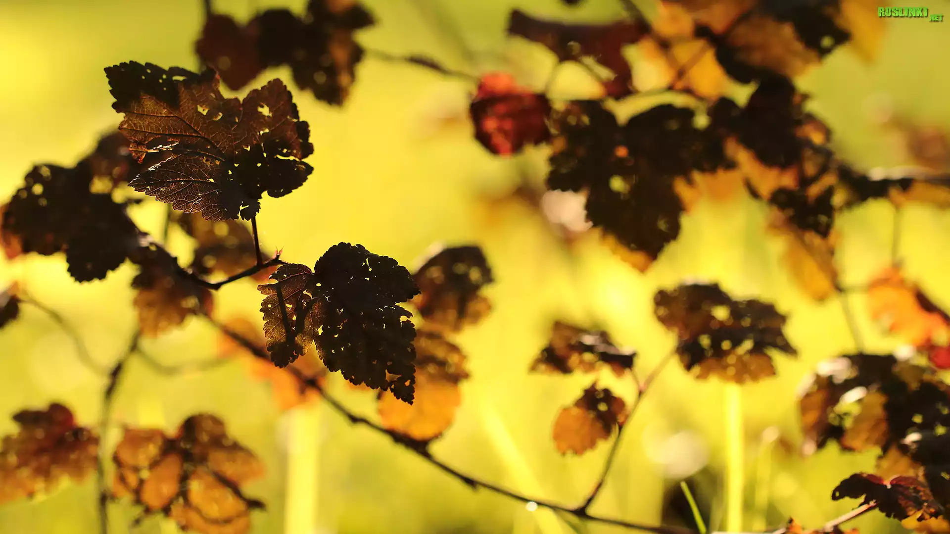 Rośliny: Jesienne, Liście, Gałązki, Żółte tło