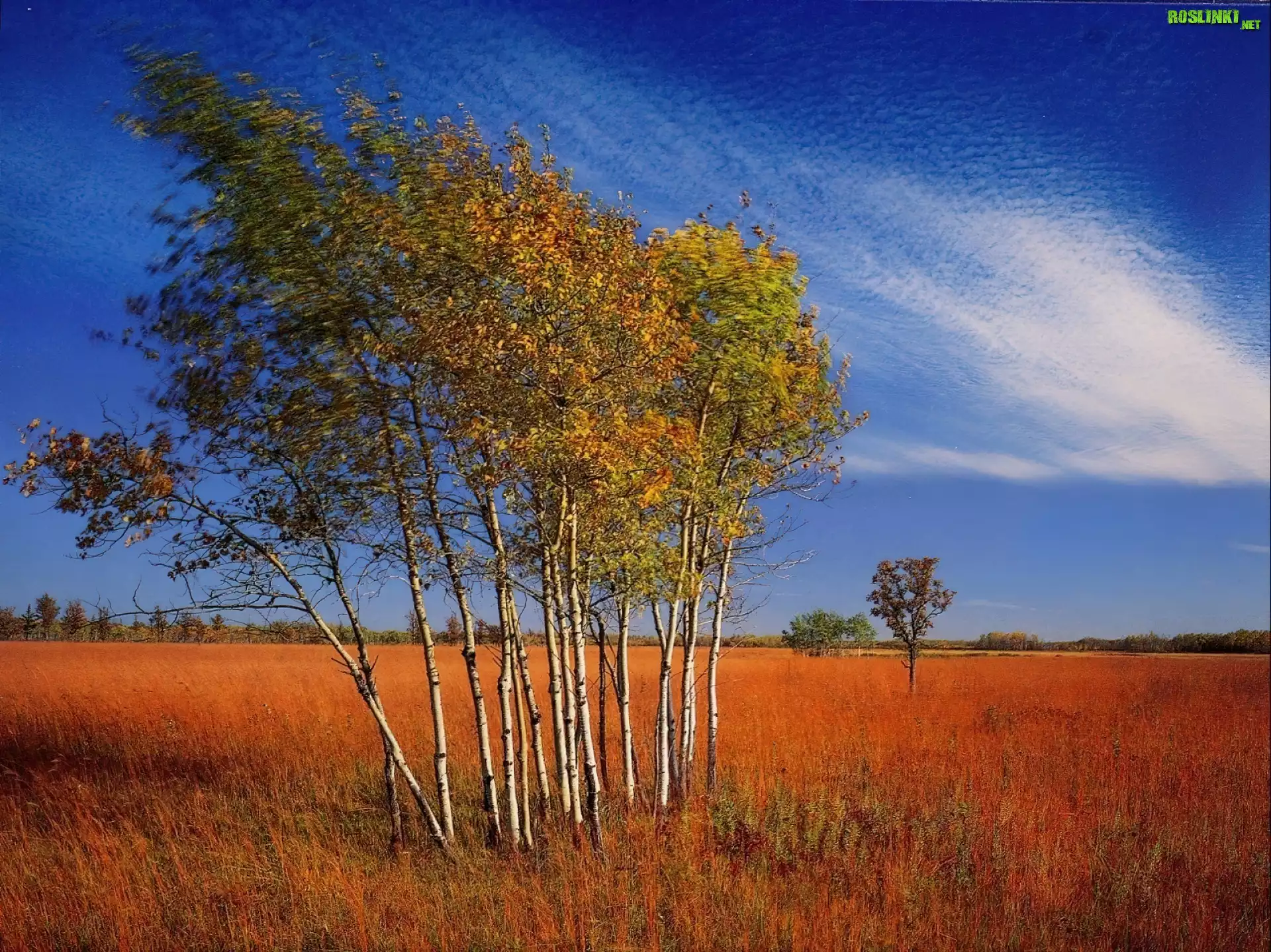 Rośliny: Jesienne, Brzozy, Pole, Chmury