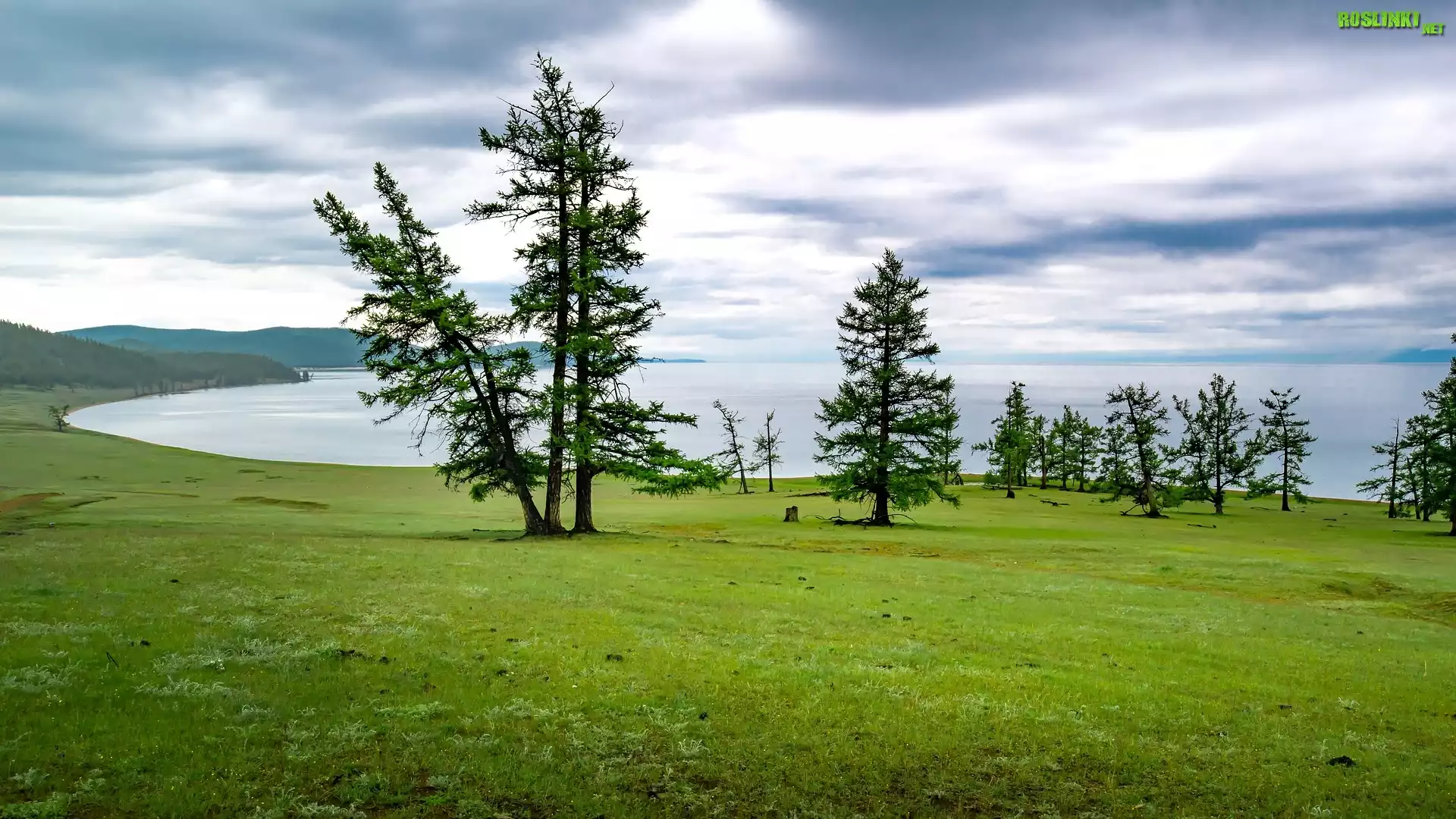 Rośliny: Jezioro, Góry, Drzewa, Łąka, Błękitne, Niebo