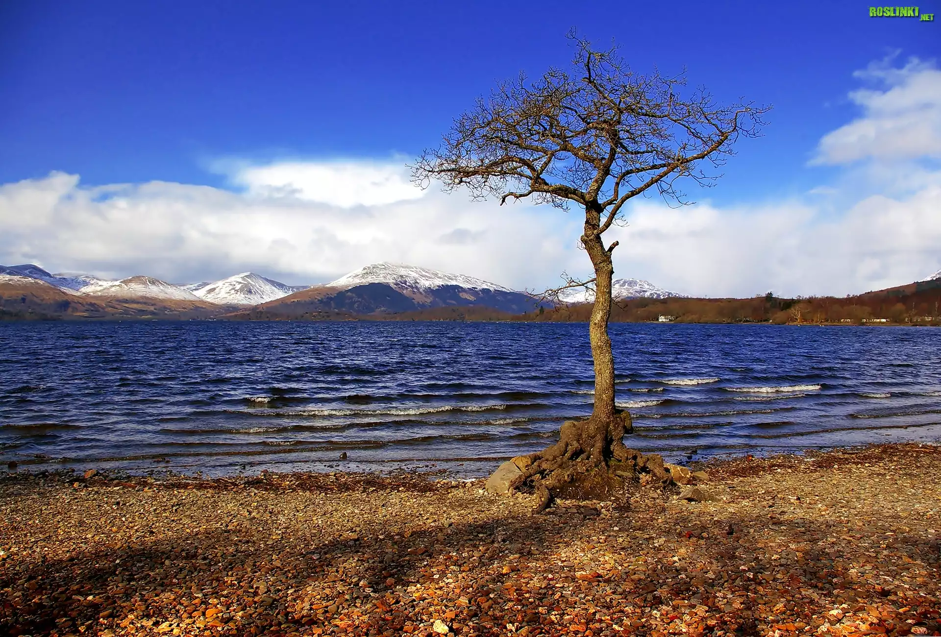 Rośliny: Jezioro, Drzewo, Brzeg, Niebo