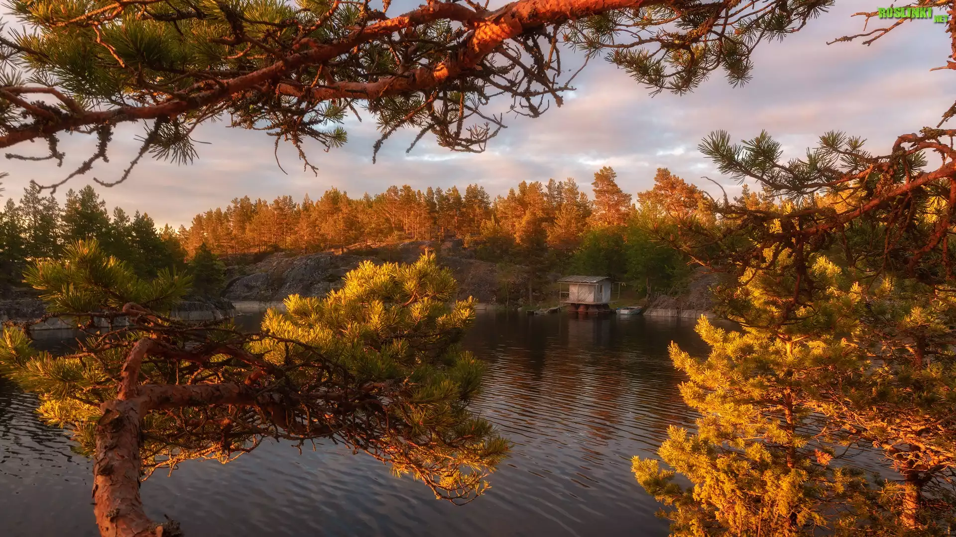Rośliny: Jezioro Ładoga, Drzewa, Jesień, Chmury, Rosja