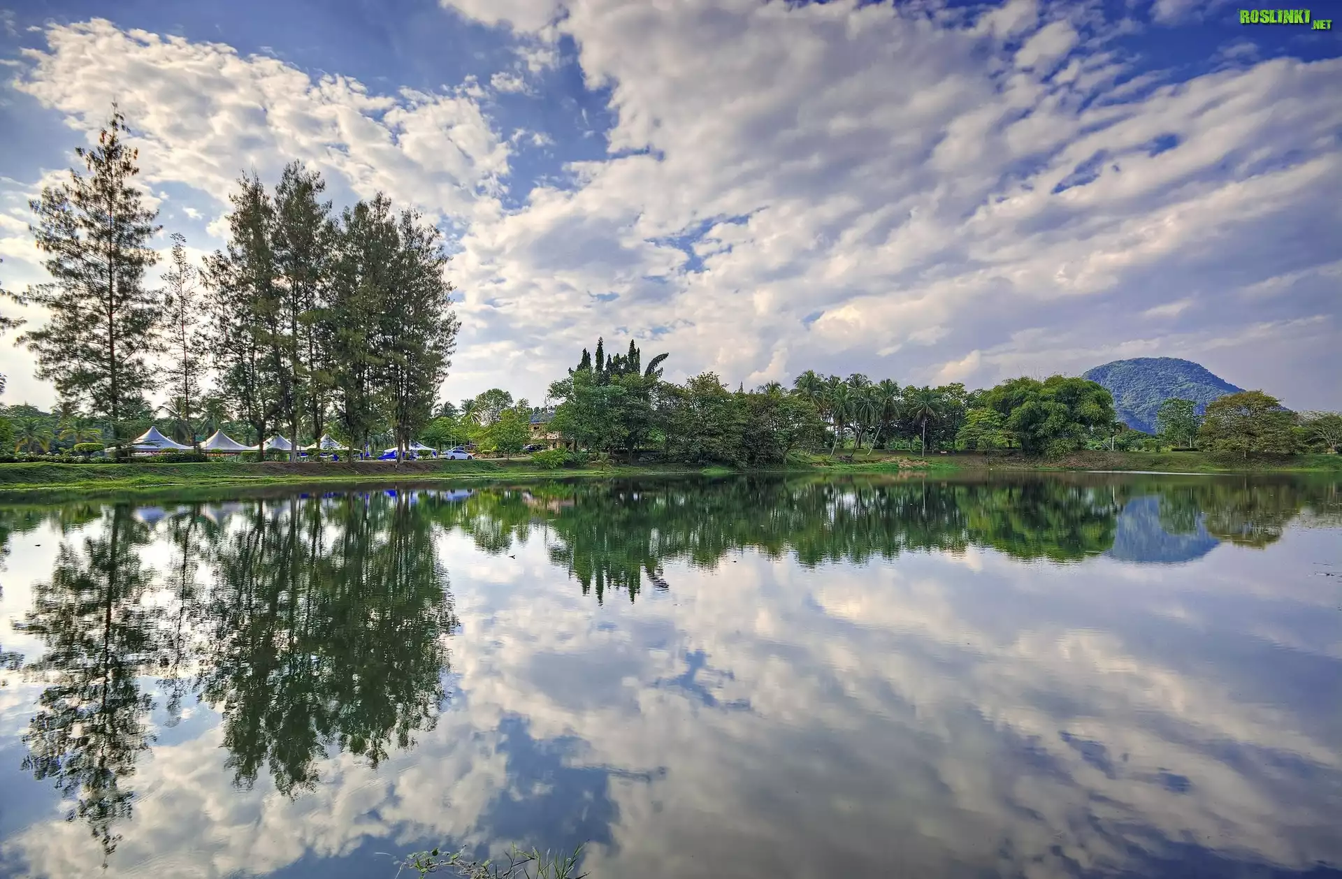Rośliny: Jezioro, Drzewa, Chmury, Odbicie