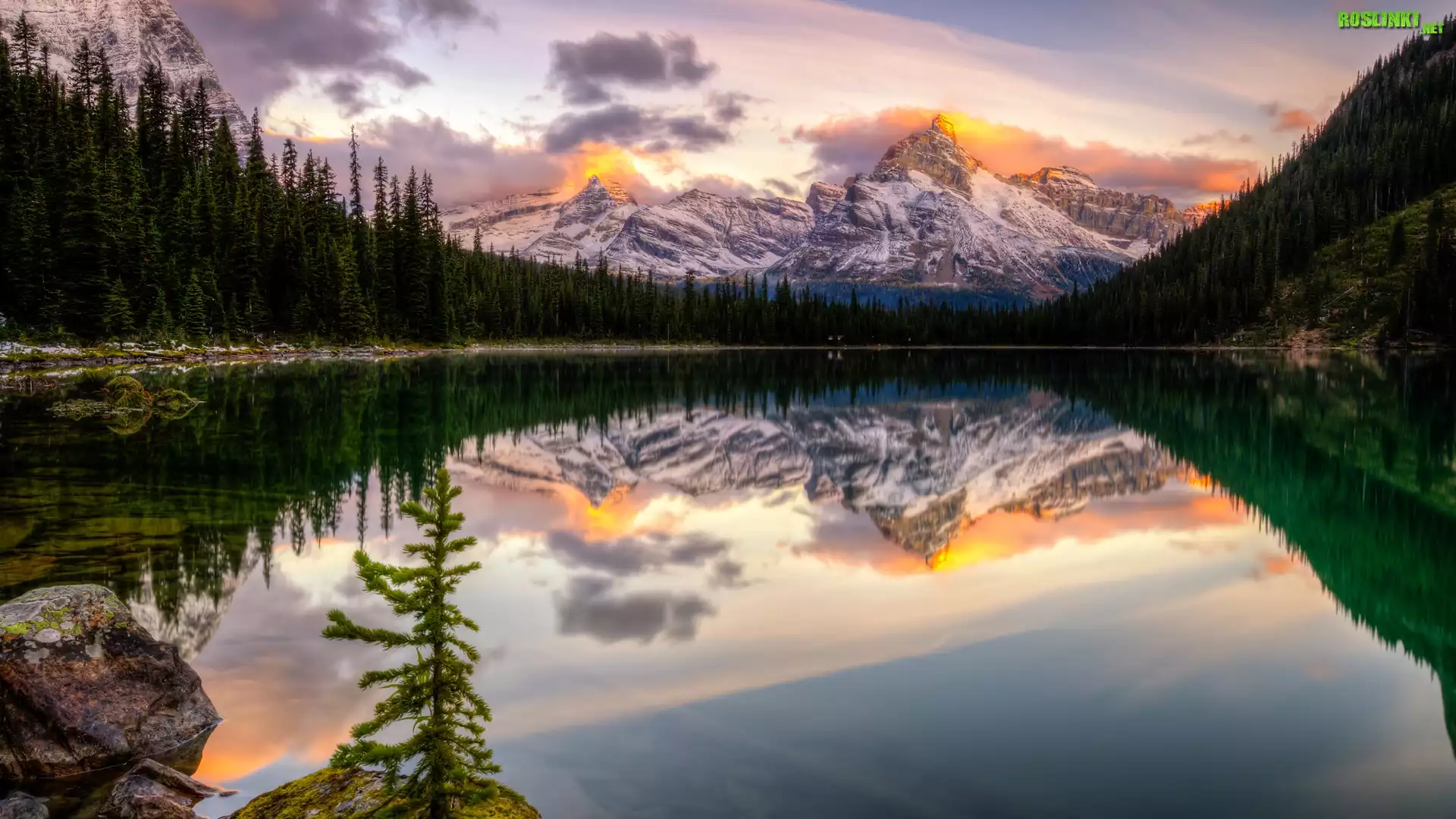 Rośliny: Jezioro, Góry, Las, Drzewa, Chmury, Odbicie