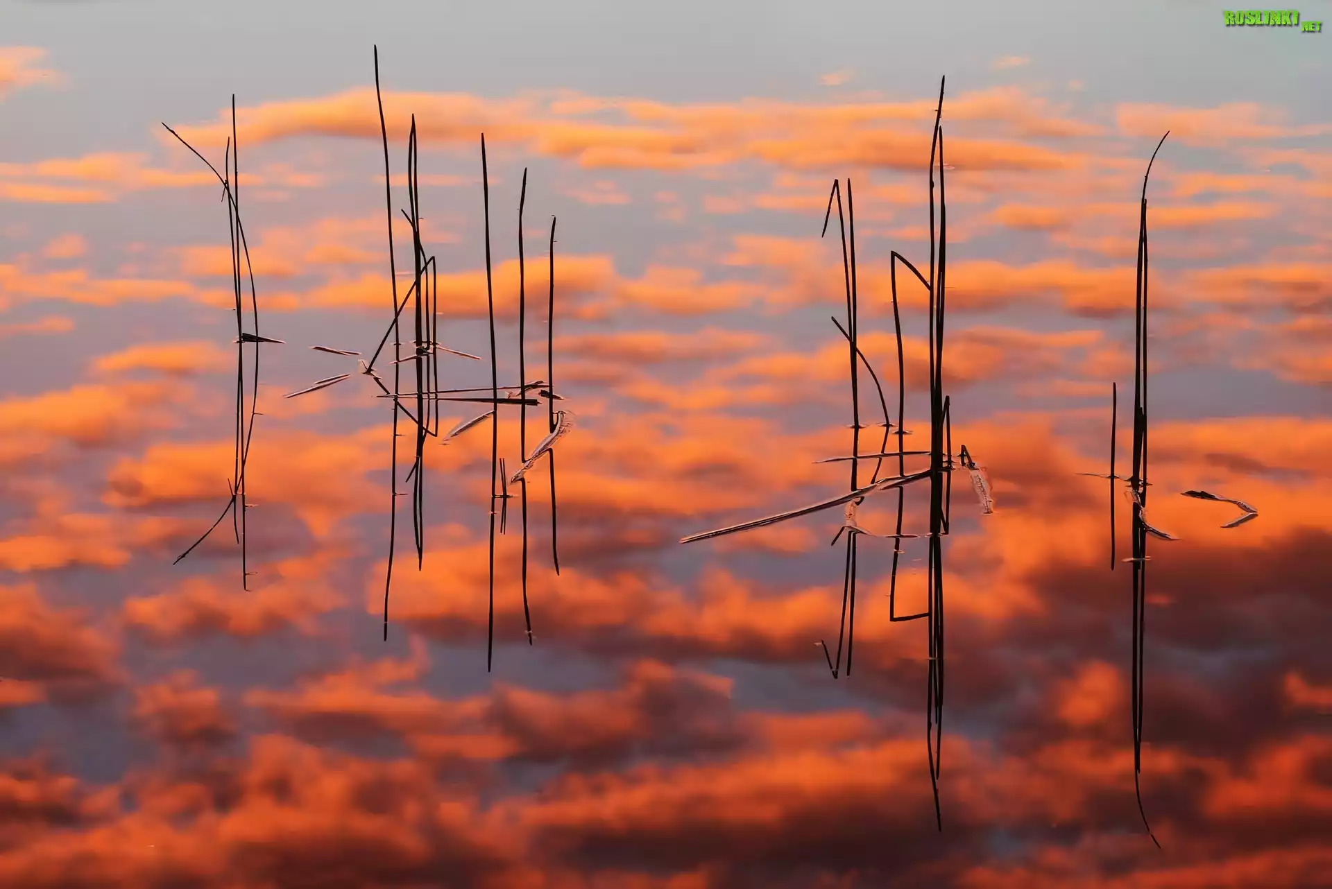 Rośliny: Jezioro, Trzciny, Chmury, Odbicie