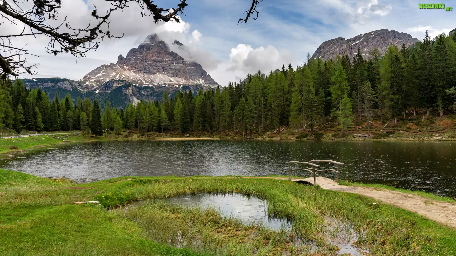 Rośliny: Jezioro, Antorno Lake, Most, Trawa, Drzewa, Las, Góry, Dolomity, Włochy