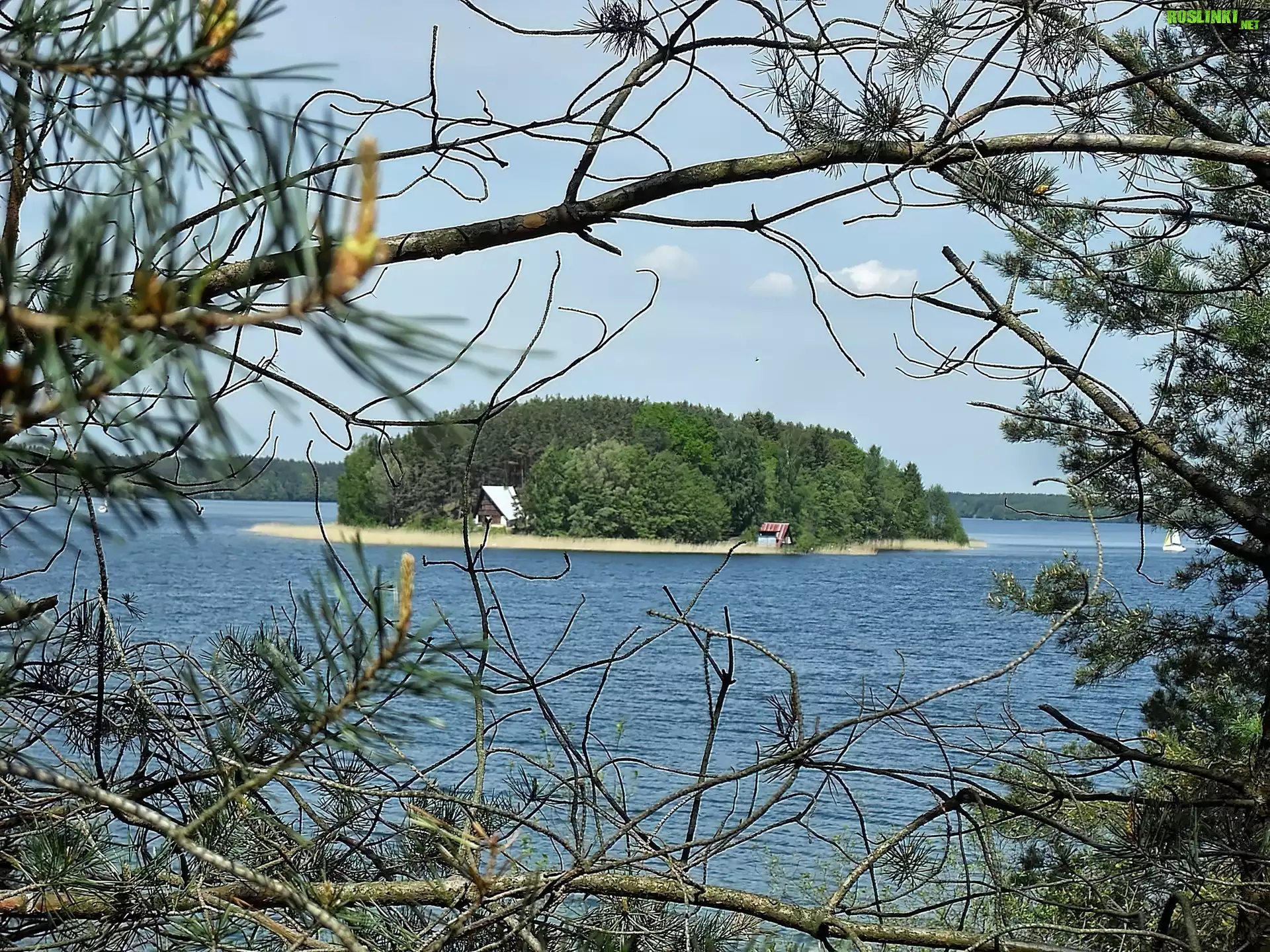 Rośliny: Jezioro, Wyspa, Las, Domek, Drzewa