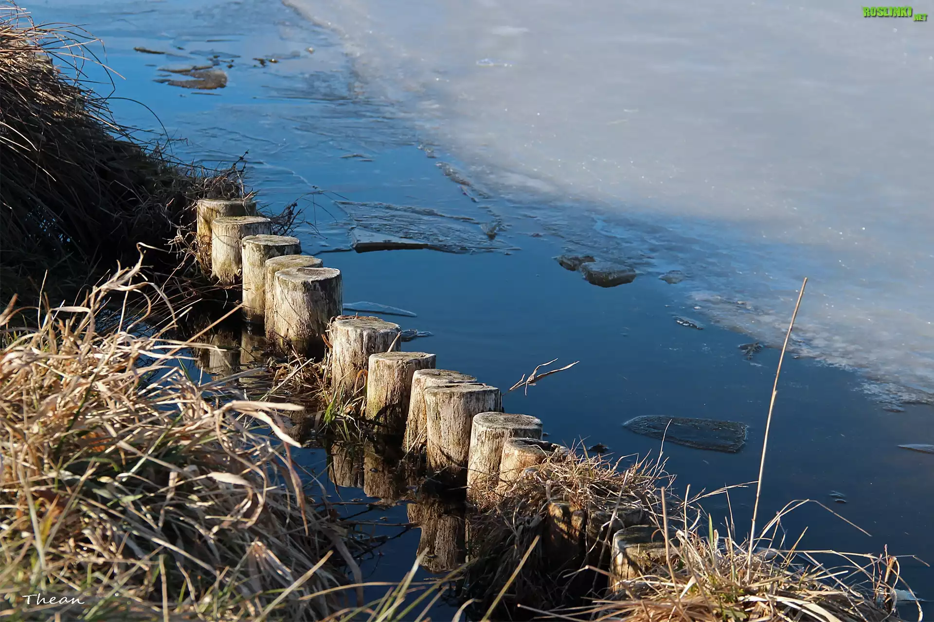 Rośliny: Jezioro, Lód, Sucha, Trawa, Drewniane, Kołki