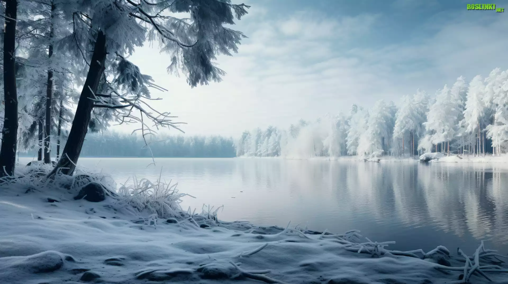 Rośliny: Zima, Jezioro, Drzewa, Śnieg, 2D