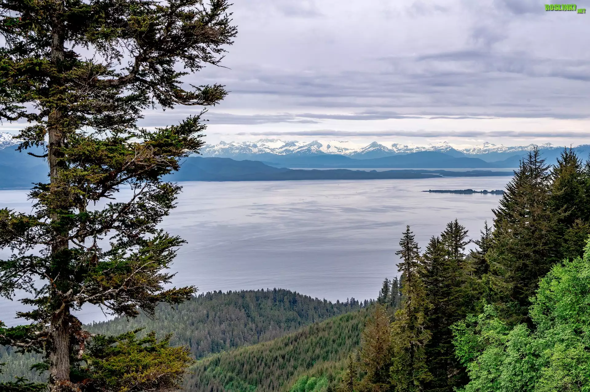 Stany Zjednoczone, Alaska, Jezioro, Góry, Drzewa