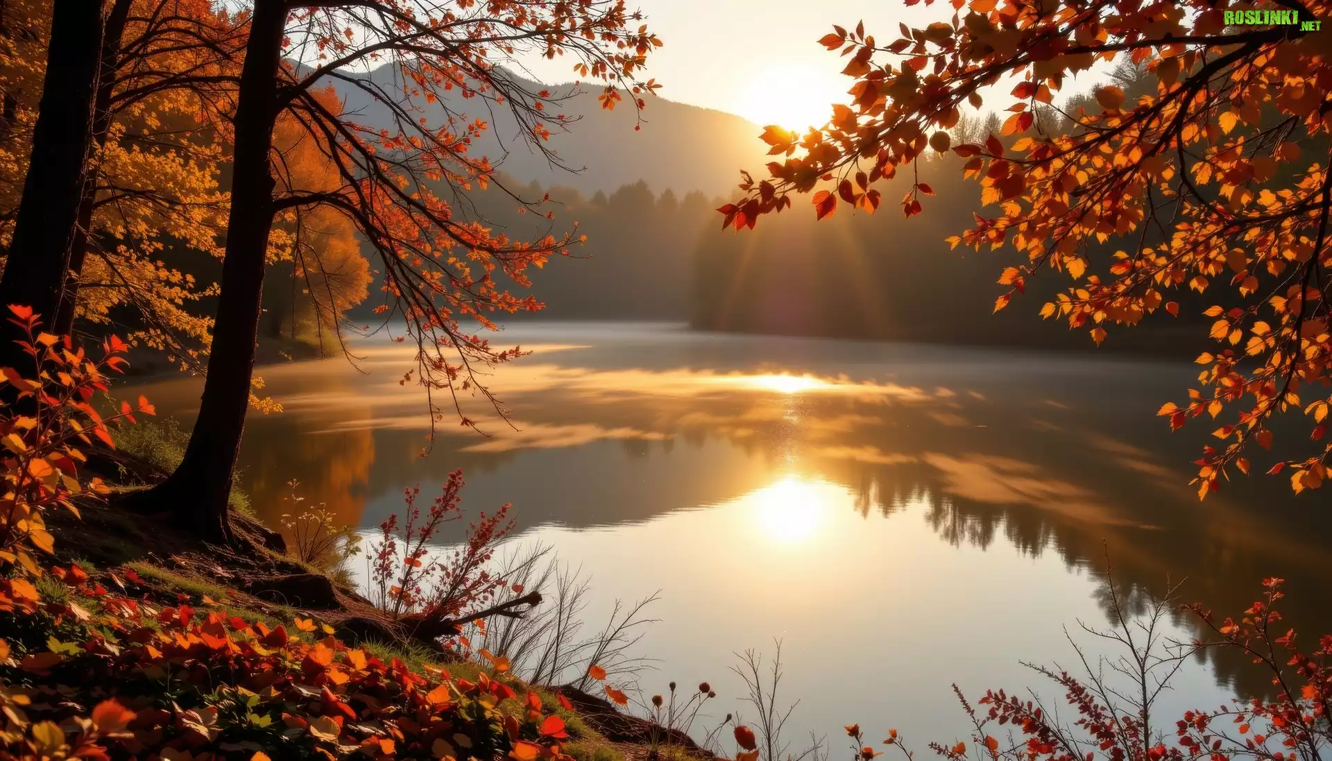 Rośliny: Jesień, Jezioro, Drzewa, Słoneczny blask