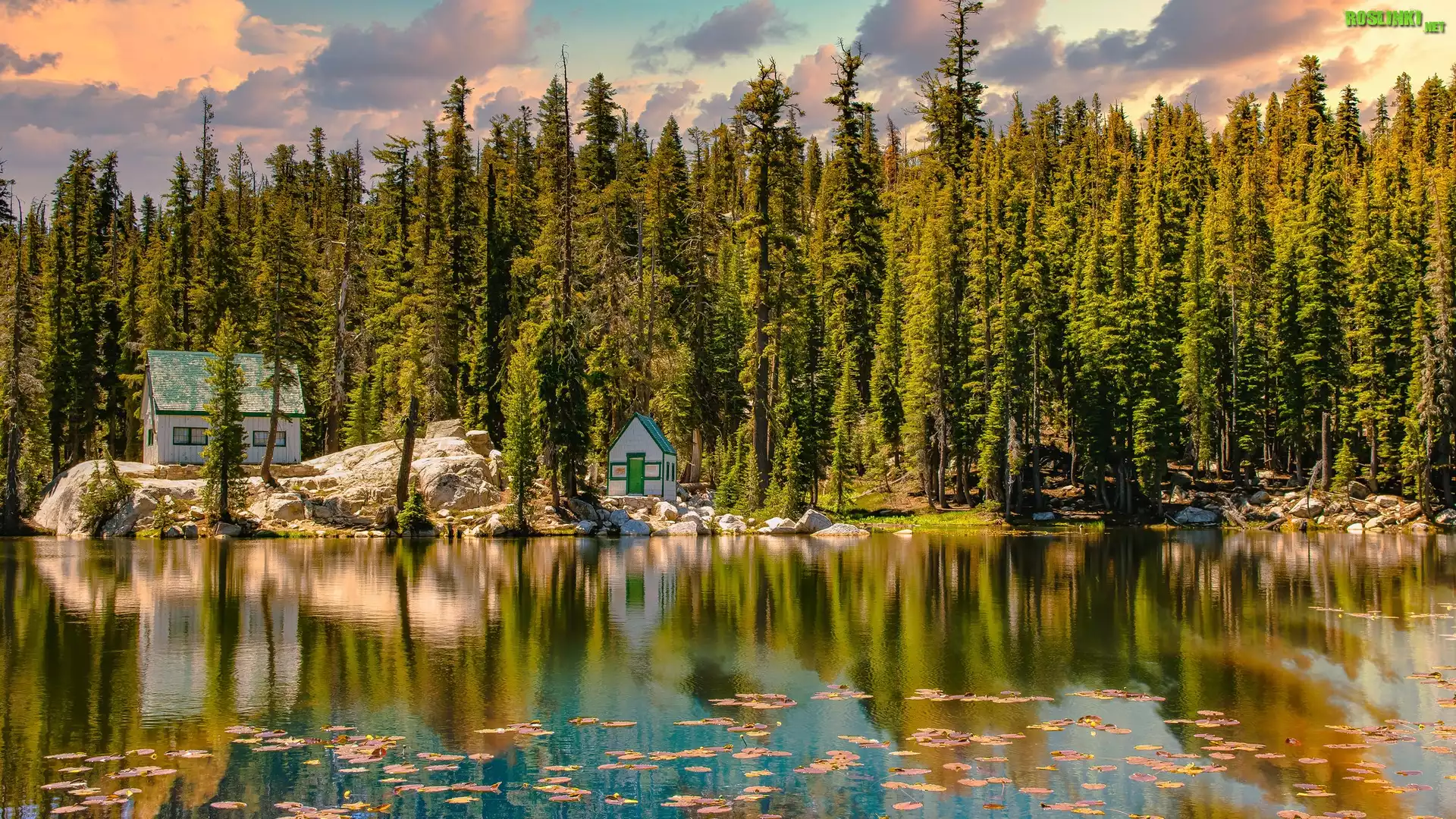 Rośliny: Jezioro, Domy, Drzewa, Las