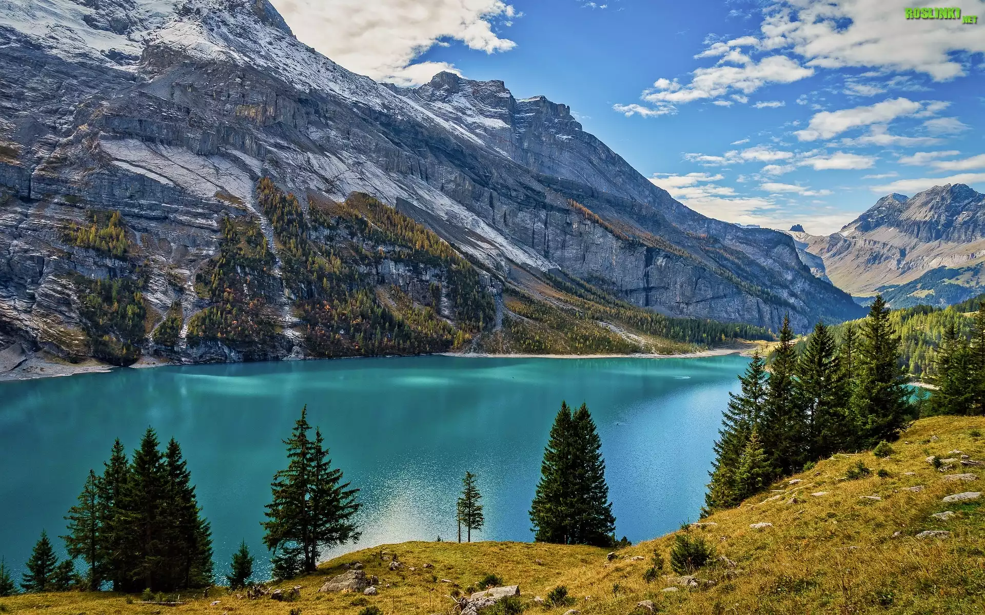 Rośliny: Jezioro, Skaliste, Góry, Drzewa, Chmury