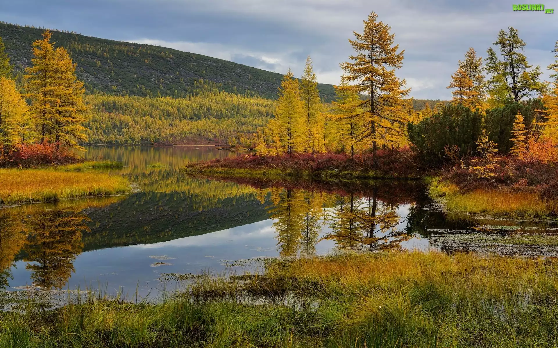 Rośliny: Jezioro, Jesień, Drzewa, Roślinność