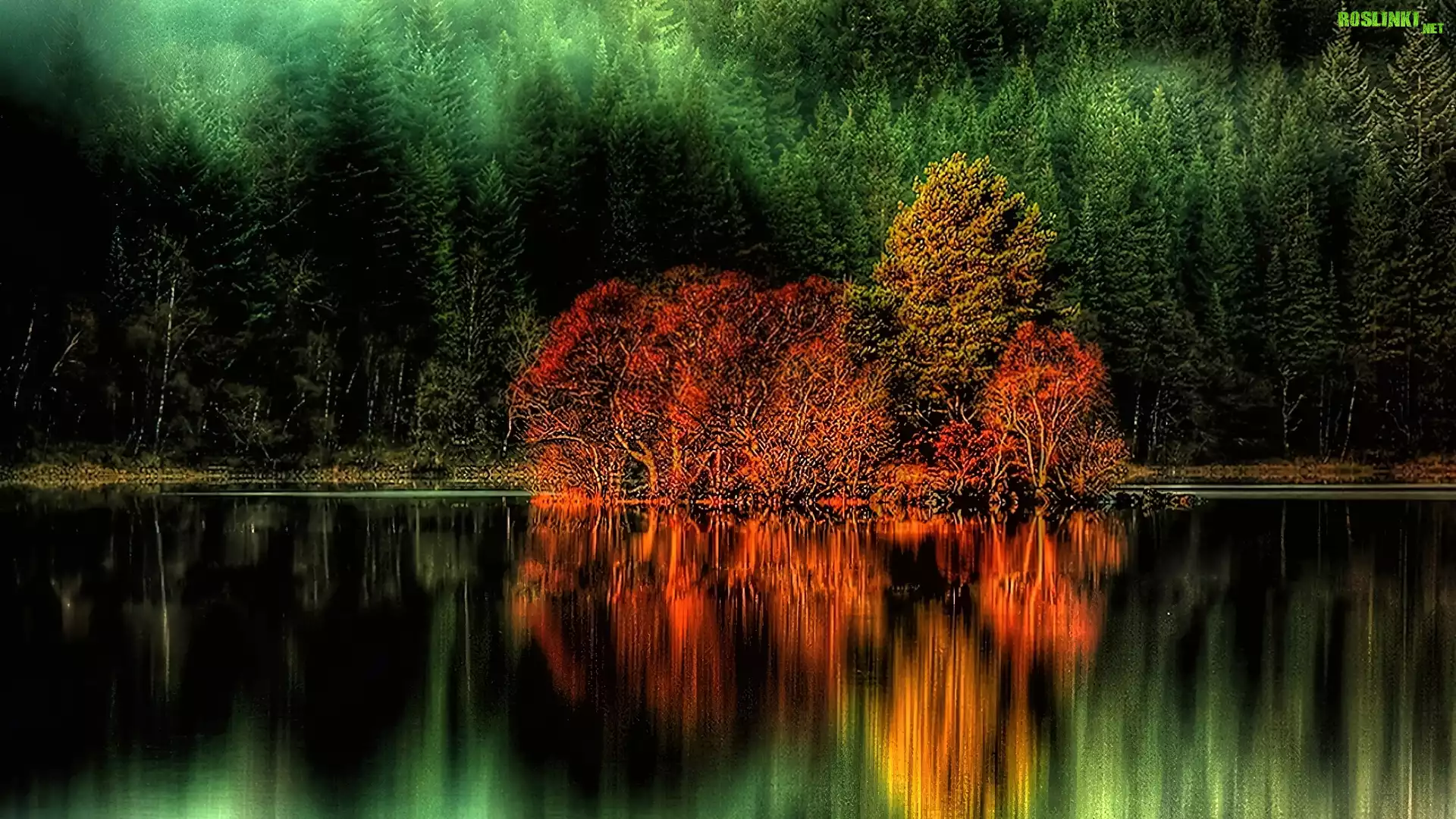 Rośliny: Drzewa, Jezioro, Jesień
