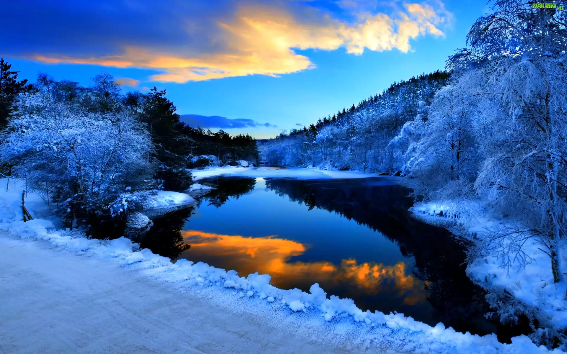 Rośliny: Drzewa, Jezioro, Śnieg