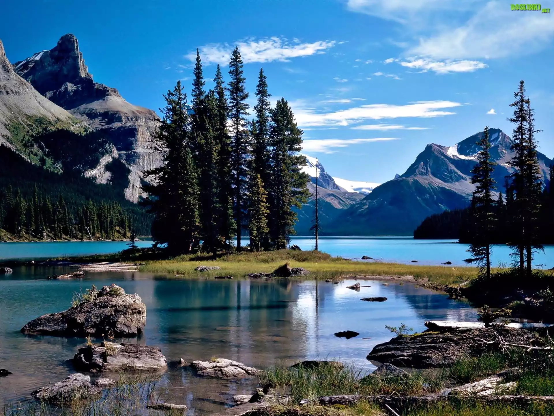 Rośliny: Jezioro, Wysepka, Drzewa, Góry
