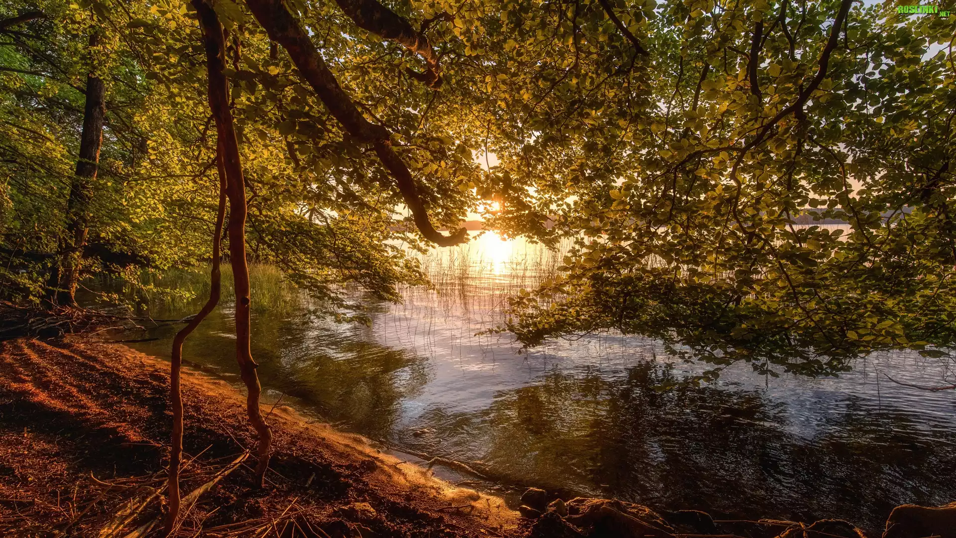 Rośliny: Jezioro, Brzeg, Drzewo, Poranek