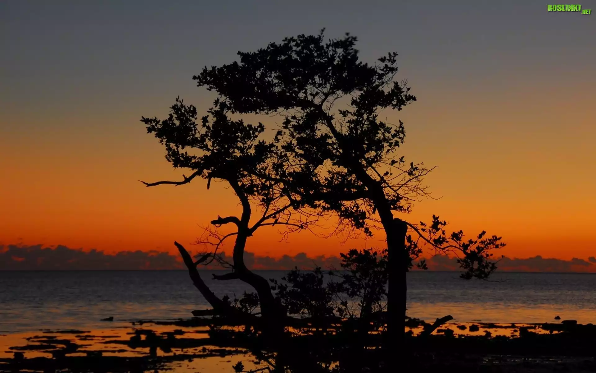 Rośliny: Jezioro, Zachód, Słońca, Dwa, Drzewa