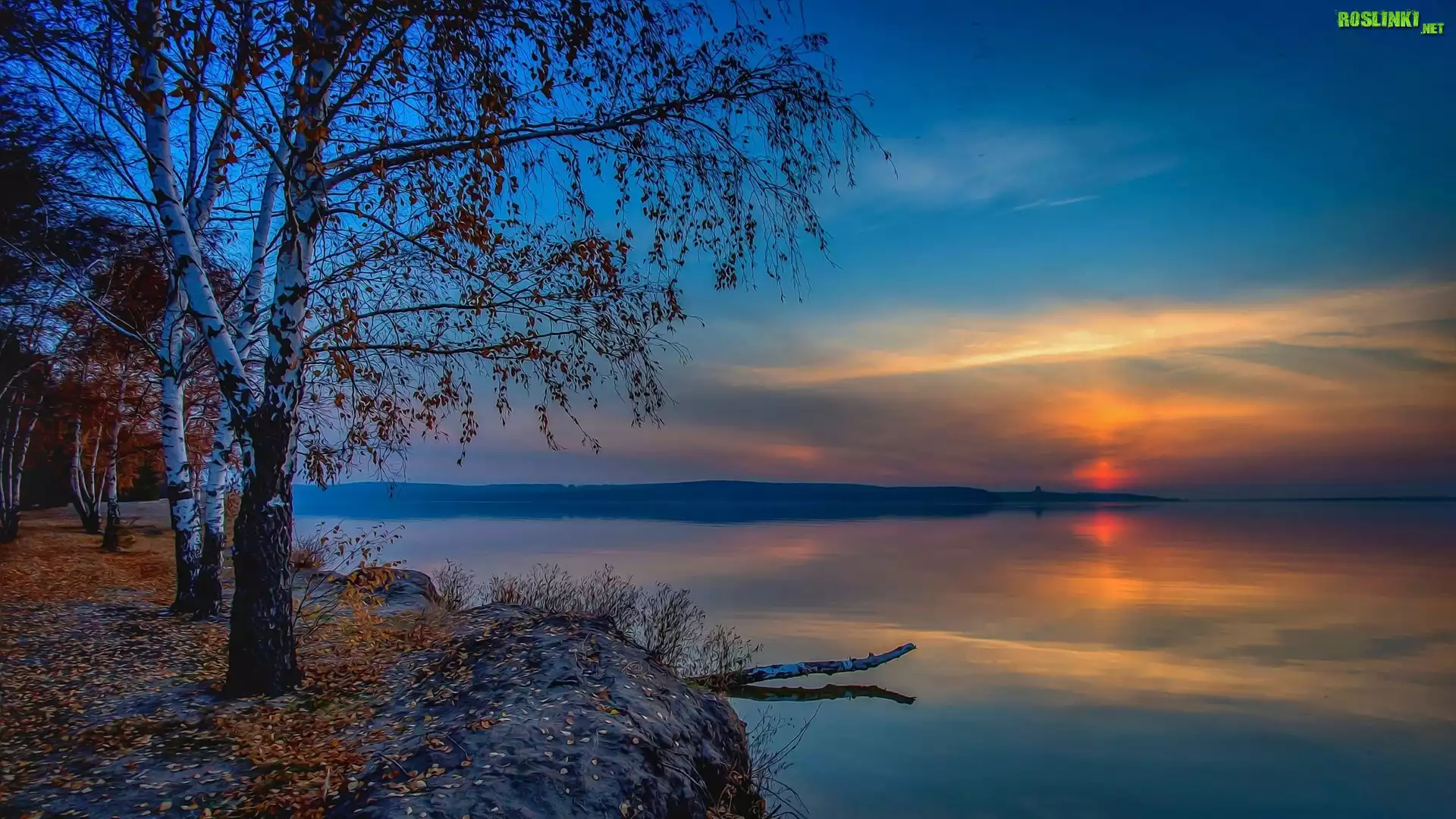 Rośliny: Jezioro, Zachód słońca, Fractalius, Brzoza