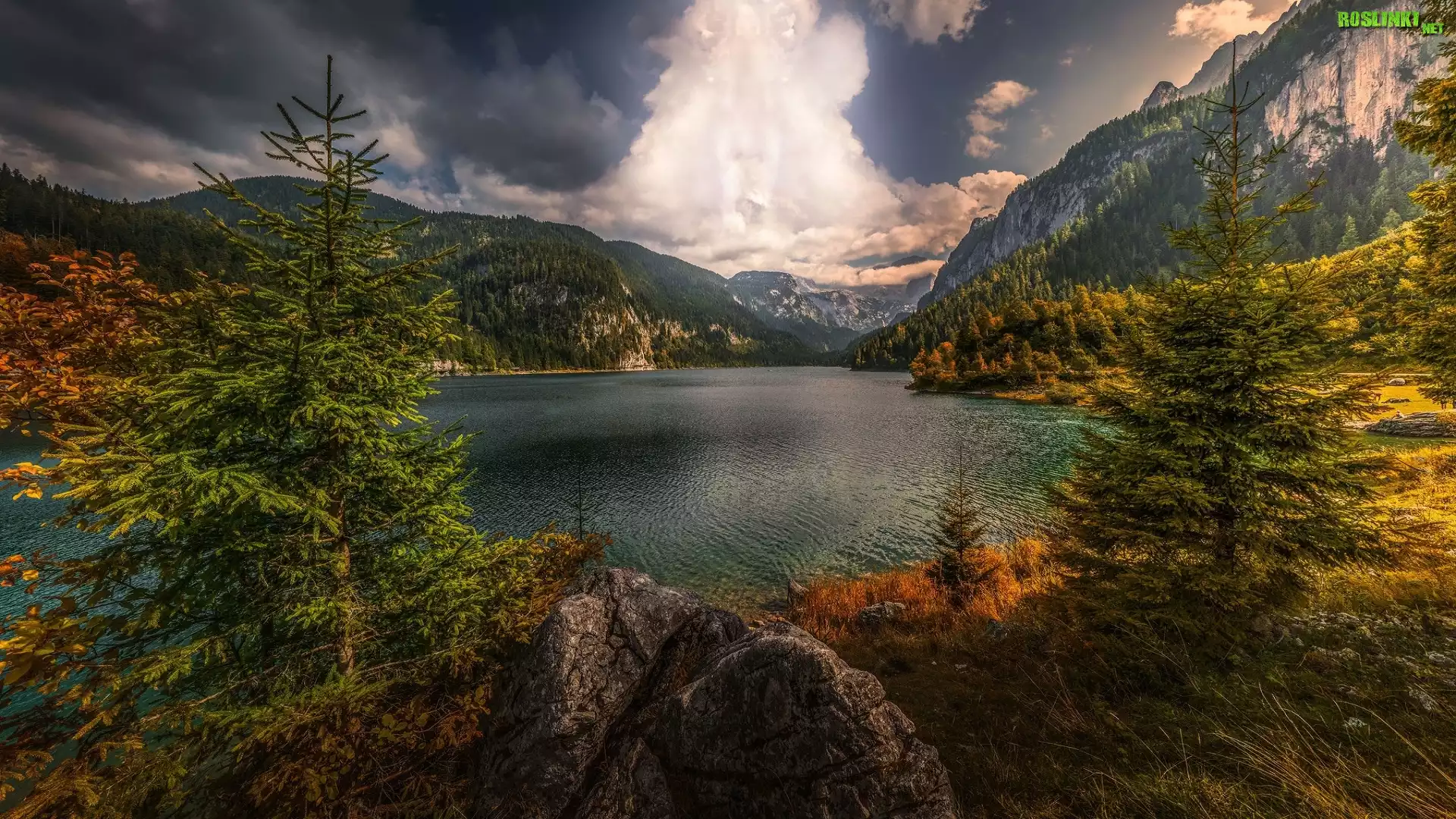 Rośliny: Góry, Skały, Drzewa, Świerki, Chmury, Jezioro Gosauseen, Alpy Salzburskie, Gmina Gosau, Austria