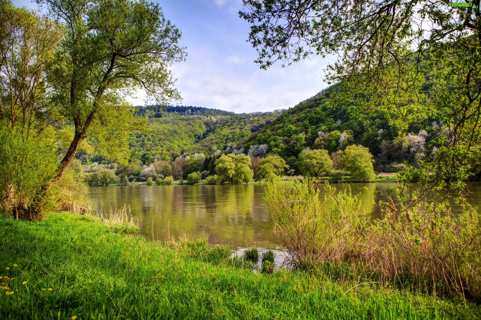 Drzewo, Las, Niebieskie Niebo Brązowy, Liść Góra, Drzewa, Niebo, skarpa Niebo, Gałęzie, Drzewa Kolorowe, Liście, Góra Pochmurne, Niebo, Zielona, Trawka, Drzewka Uschnięte, Liście, Szron Żółte, Jesienne, Liście Księżyc, Drzewa, Knieje Palmy, Rzeka, Most Drzewo, Bagienko Palmy, Skała, Morze Góra, Chmury, Drzewa Drzewo, Żółto, Zielone, Liście