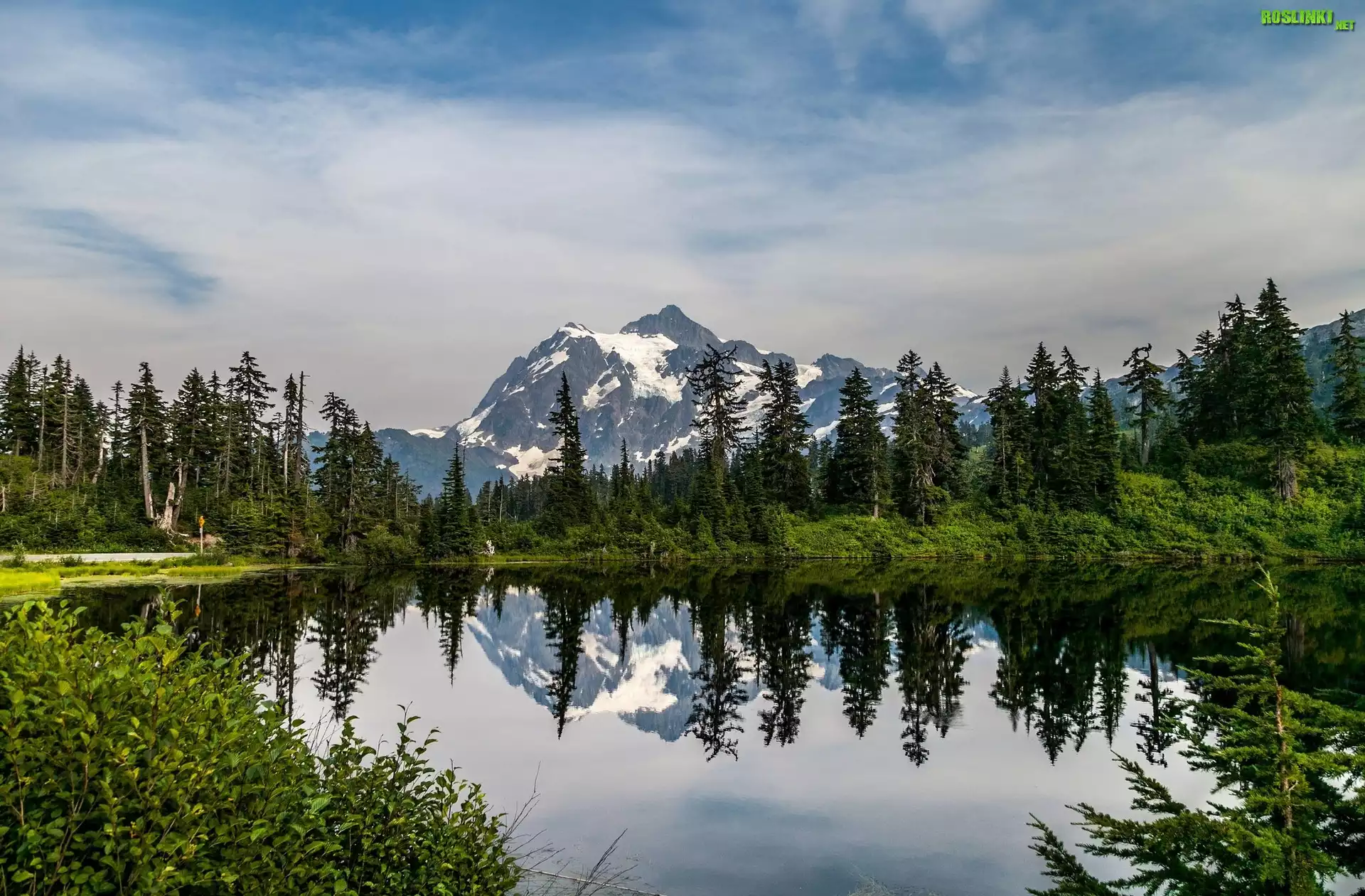 Rośliny: Jezioro, Drzewa, Góry, Odbicie