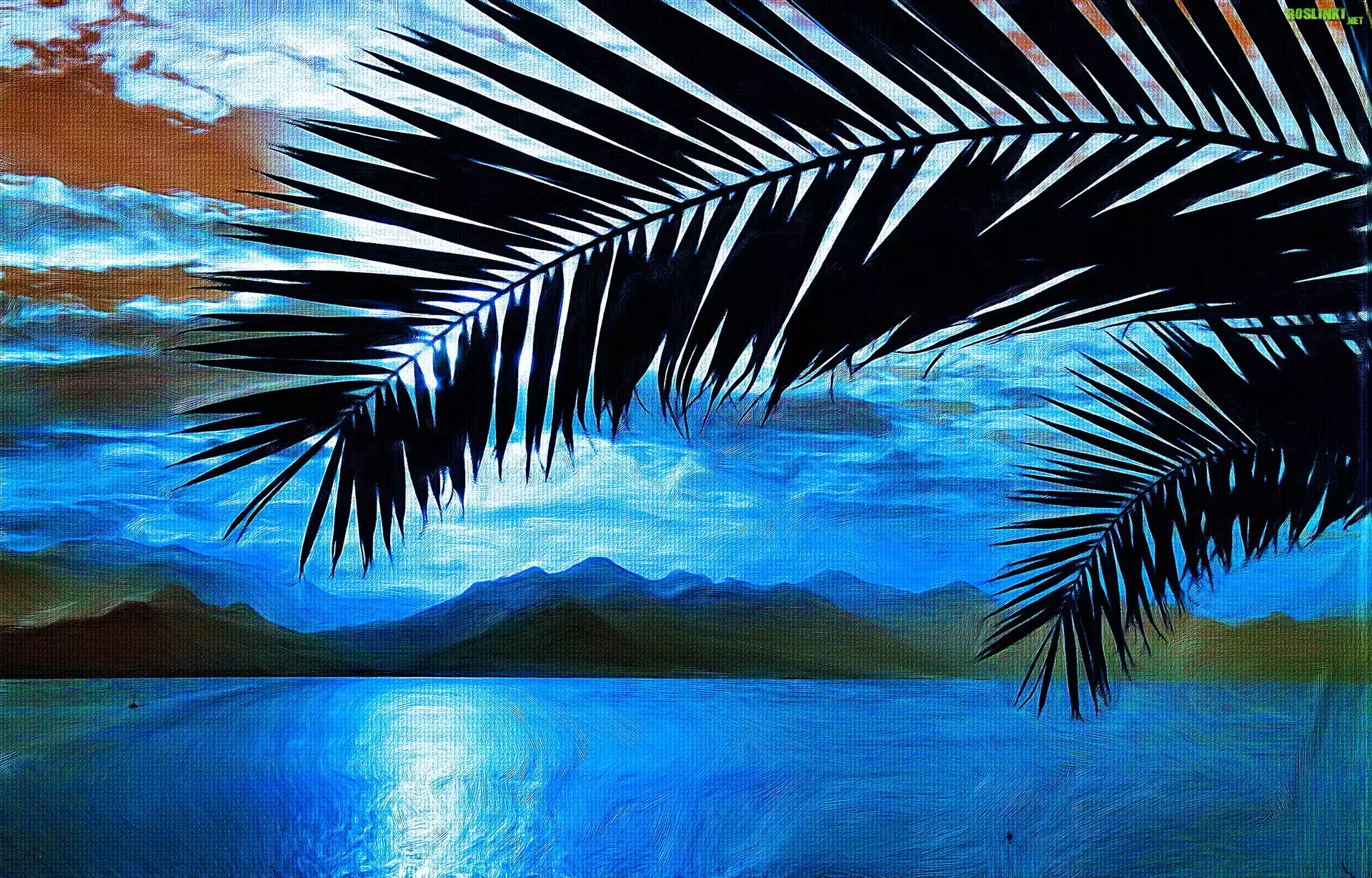 Rośliny: Góry, Jezioro, Palma
