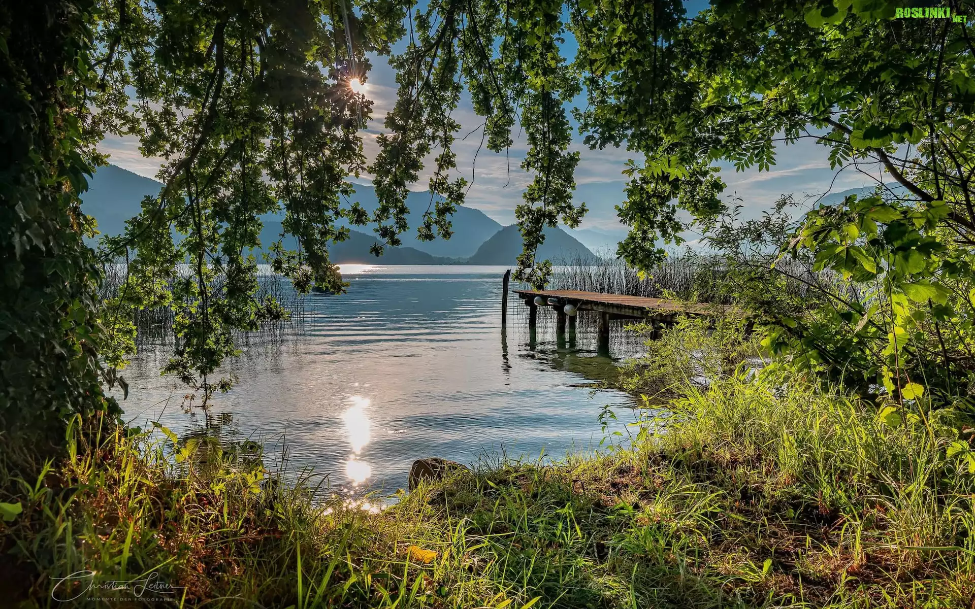 Rośliny: Austria, Salzkammergut, Góry, Jezioro, Wolfgangsee, Pomost, Drzewa