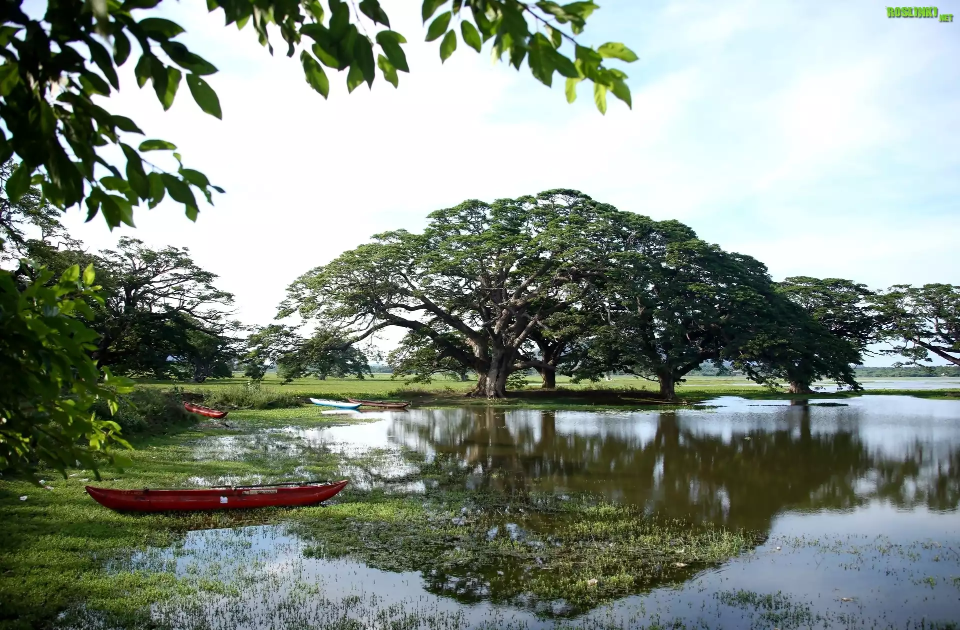 Rośliny: Jezioro, Drzewa, Kajaki, Odbicie