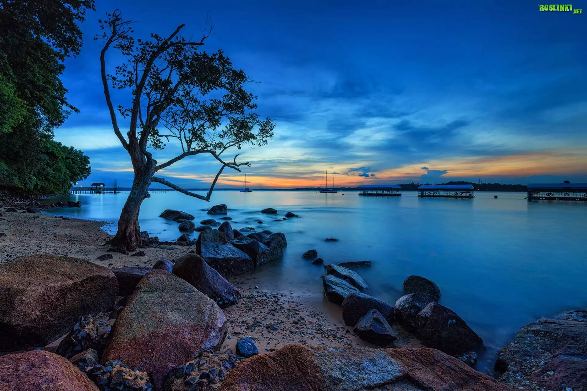 Rośliny: Jezioro, Drzewa, Kamienie, Zachód