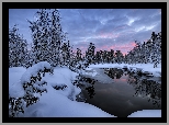 Rosja, Półwysep Kolski, Jezioro, Zima, Drzewa, Ośnieżone