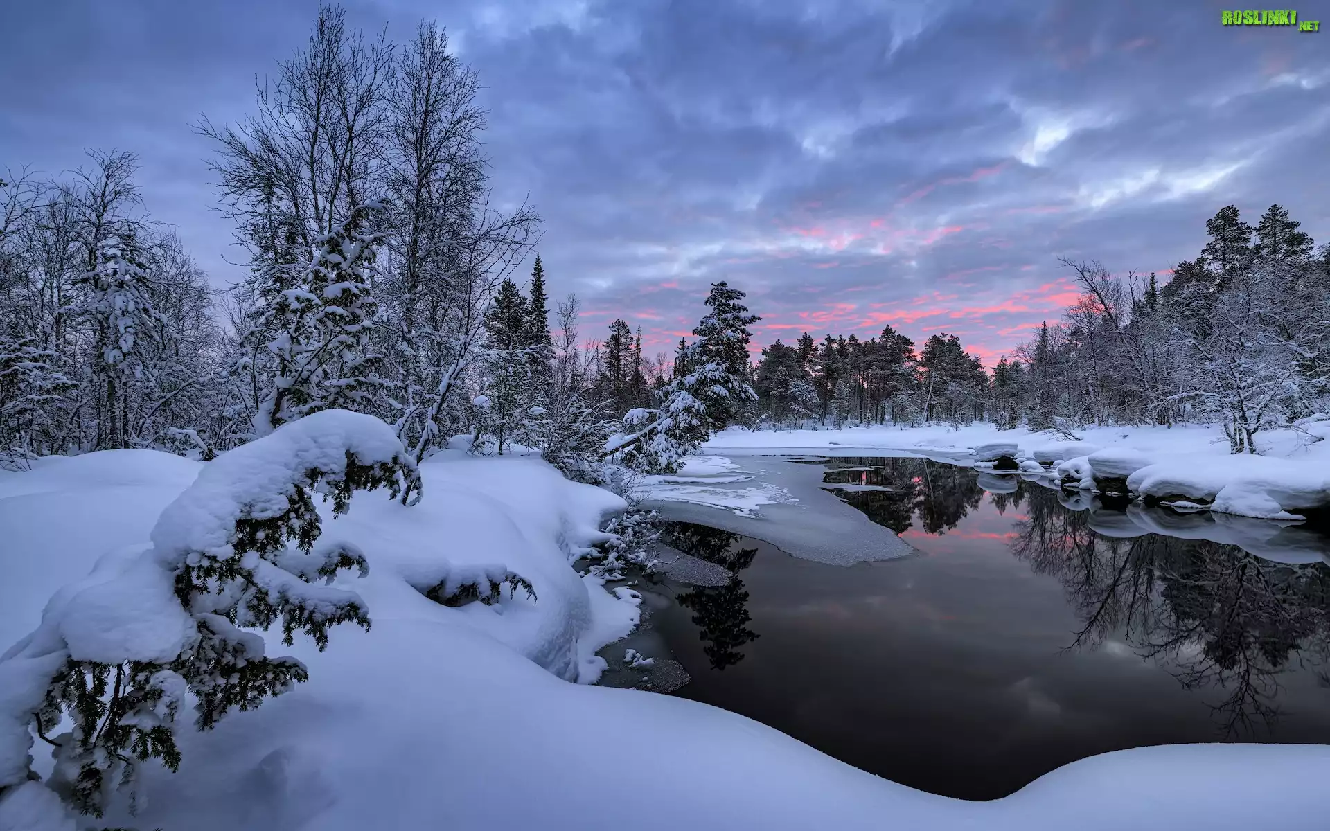 Rośliny: Rosja, Półwysep Kolski, Jezioro, Zima, Drzewa, Ośnieżone