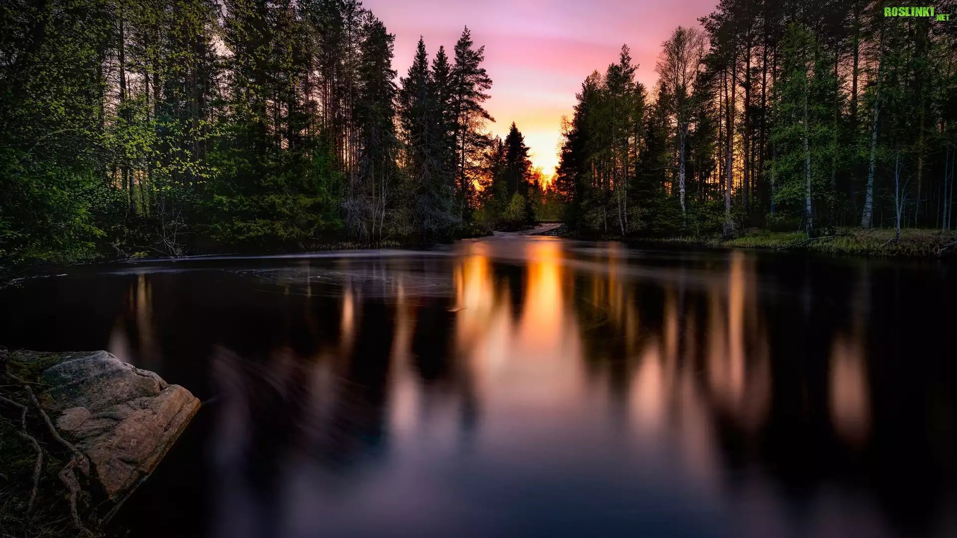 Rośliny: Jezioro, Zachód słońca, Las, Drzewa