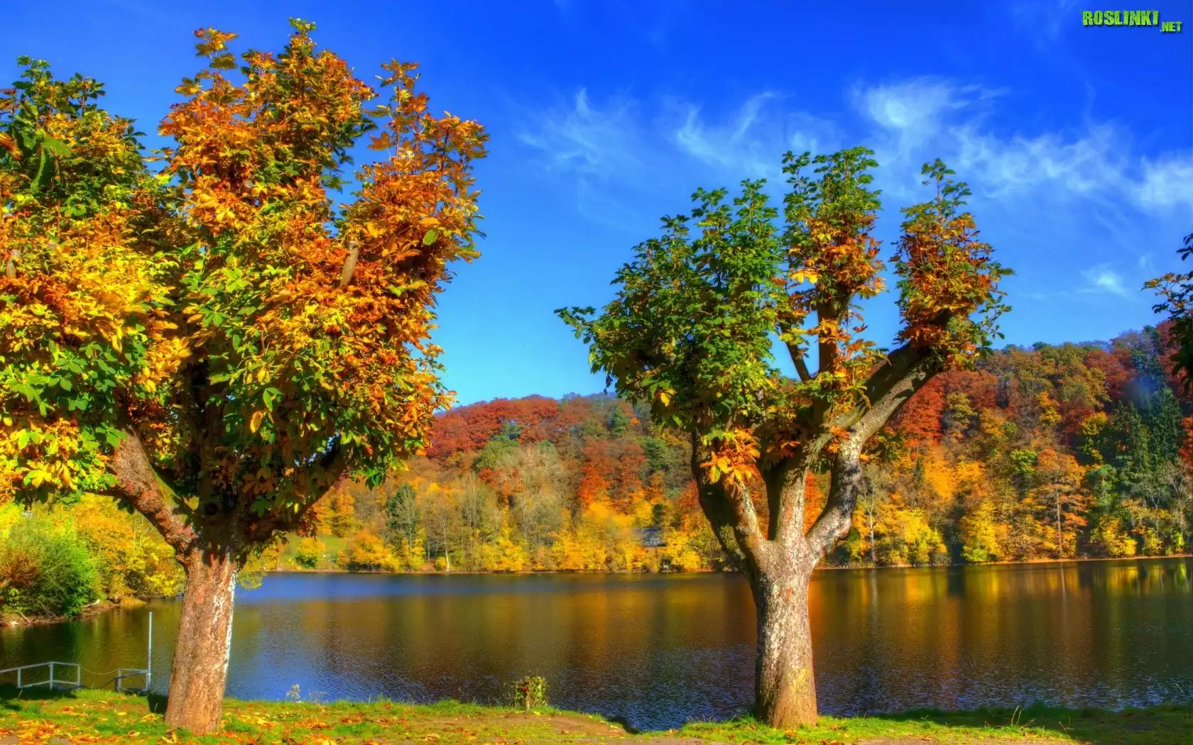 Rośliny: Jezioro, Kolorowe, Drzewa, Lasy, Jesień