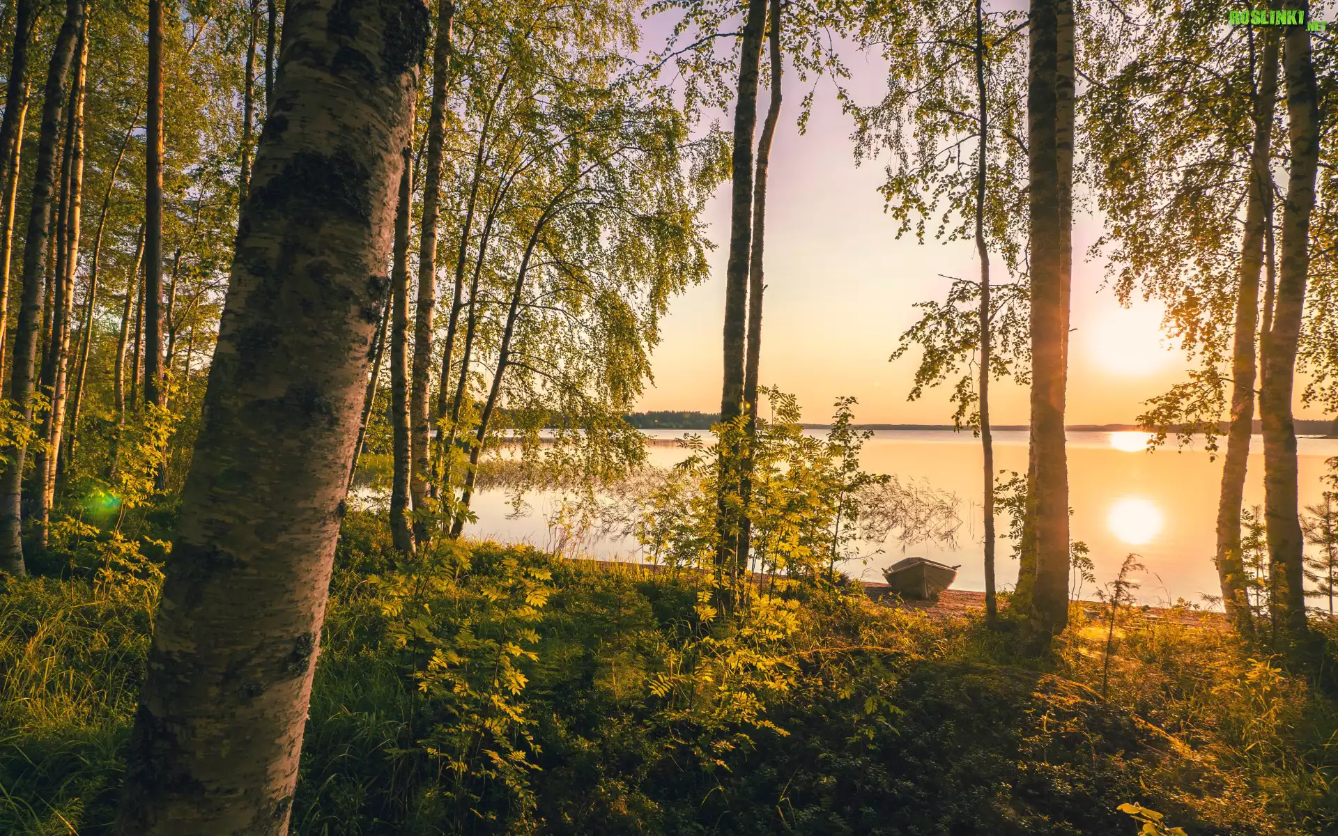 Rośliny: Jezioro, Drzewa, Łódka
