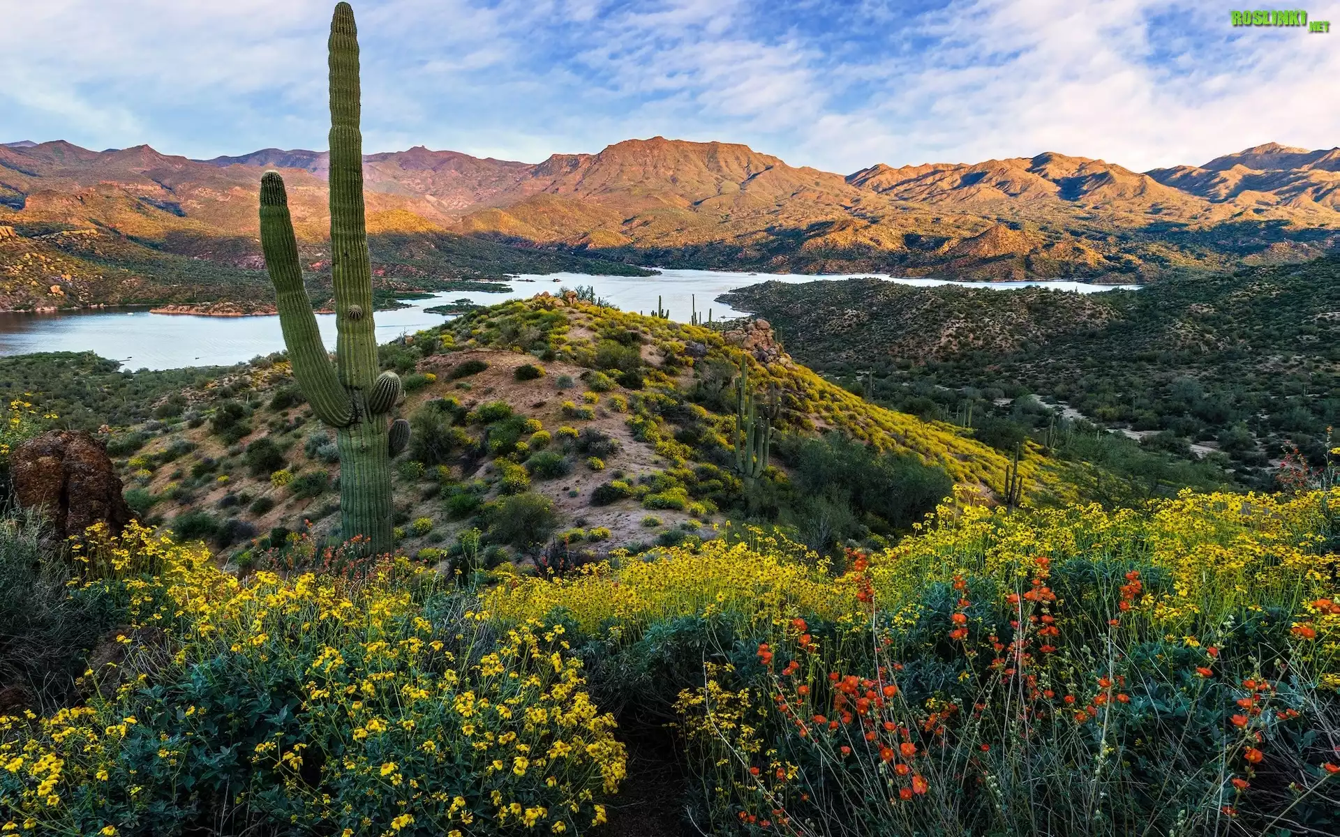 Rośliny: Stany Zjednoczone, Arizona, Góry, Mazatzal Mountains, Jezioro, Mazatzal Lake, Krzewy, Kaktus
