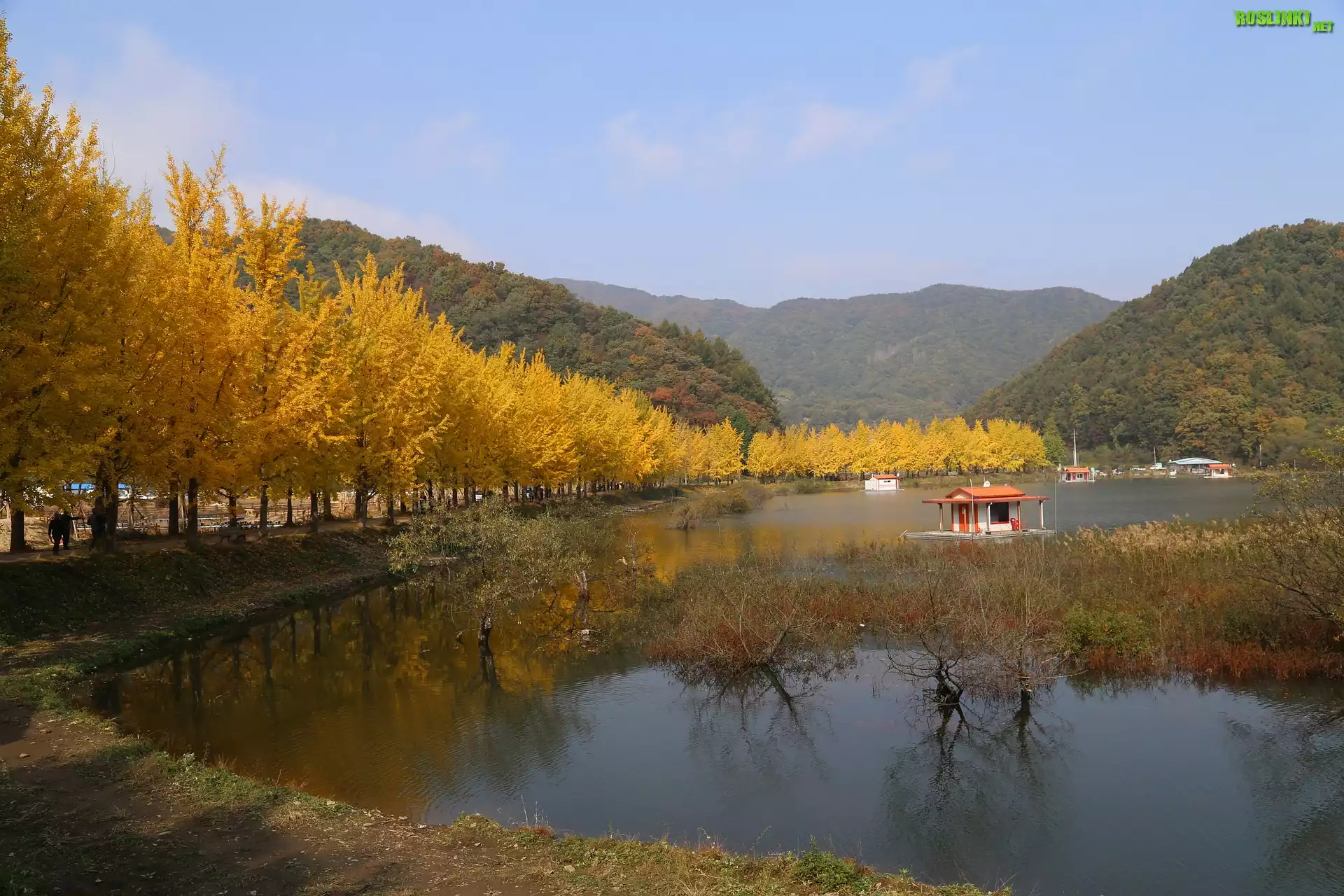 Rośliny: Jezioro, Drzewa, Miłorzęby, Jesień