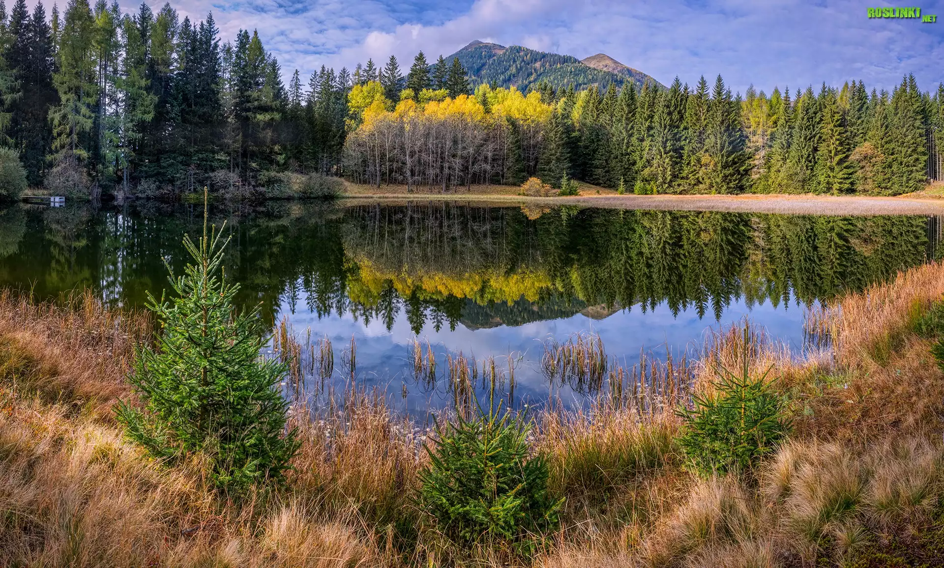 Rośliny: Góry, Lasy, Drzewa, Jezioro, Chmury, Odbicie