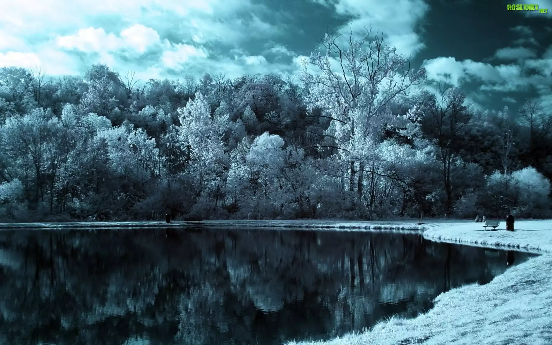 Rośliny: Jezioro, Drzewa, Park, Zima
