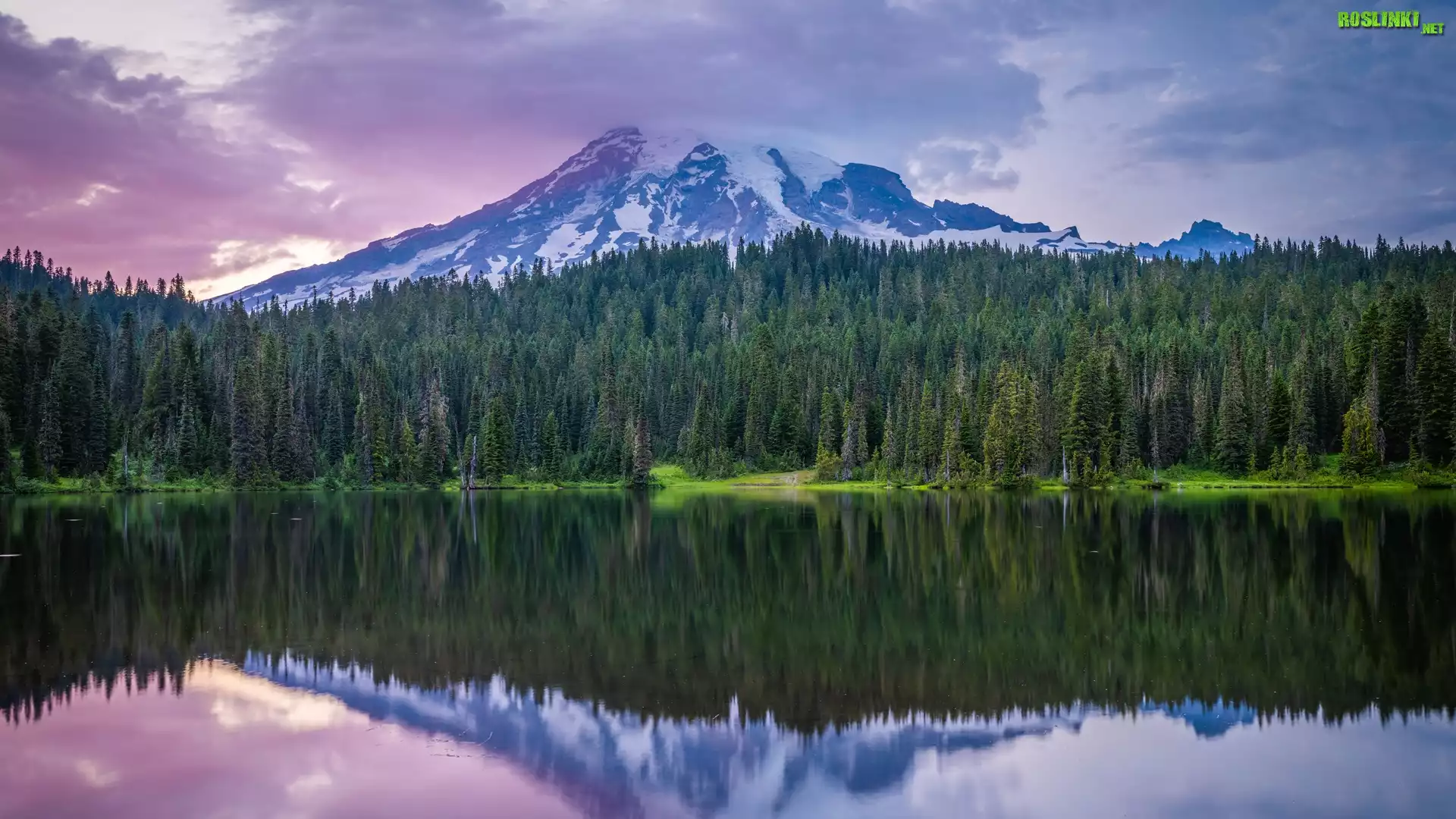 Rośliny: Park Narodowy Mount Rainier, Góry, Jezioro, Drzewa, Chmury, Stan Waszyngton, Stany Zjednoczone