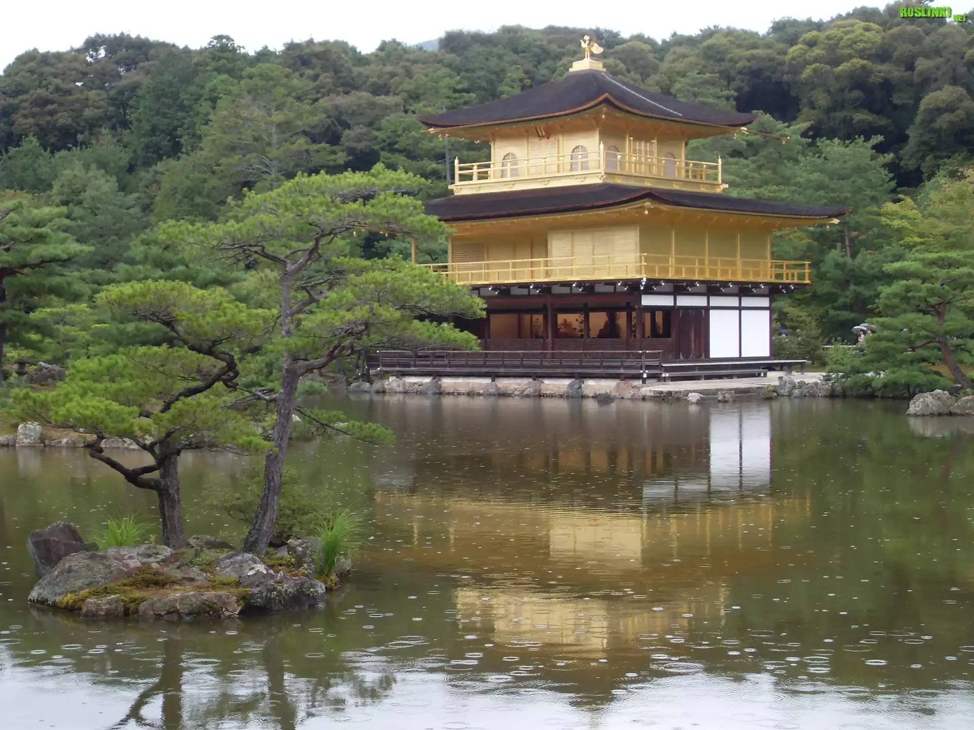 Rośliny: Świątynia Kinkakuji, Złoty Pawilon, Staw Kyko chi, Drzewa, Kioto, Japonia