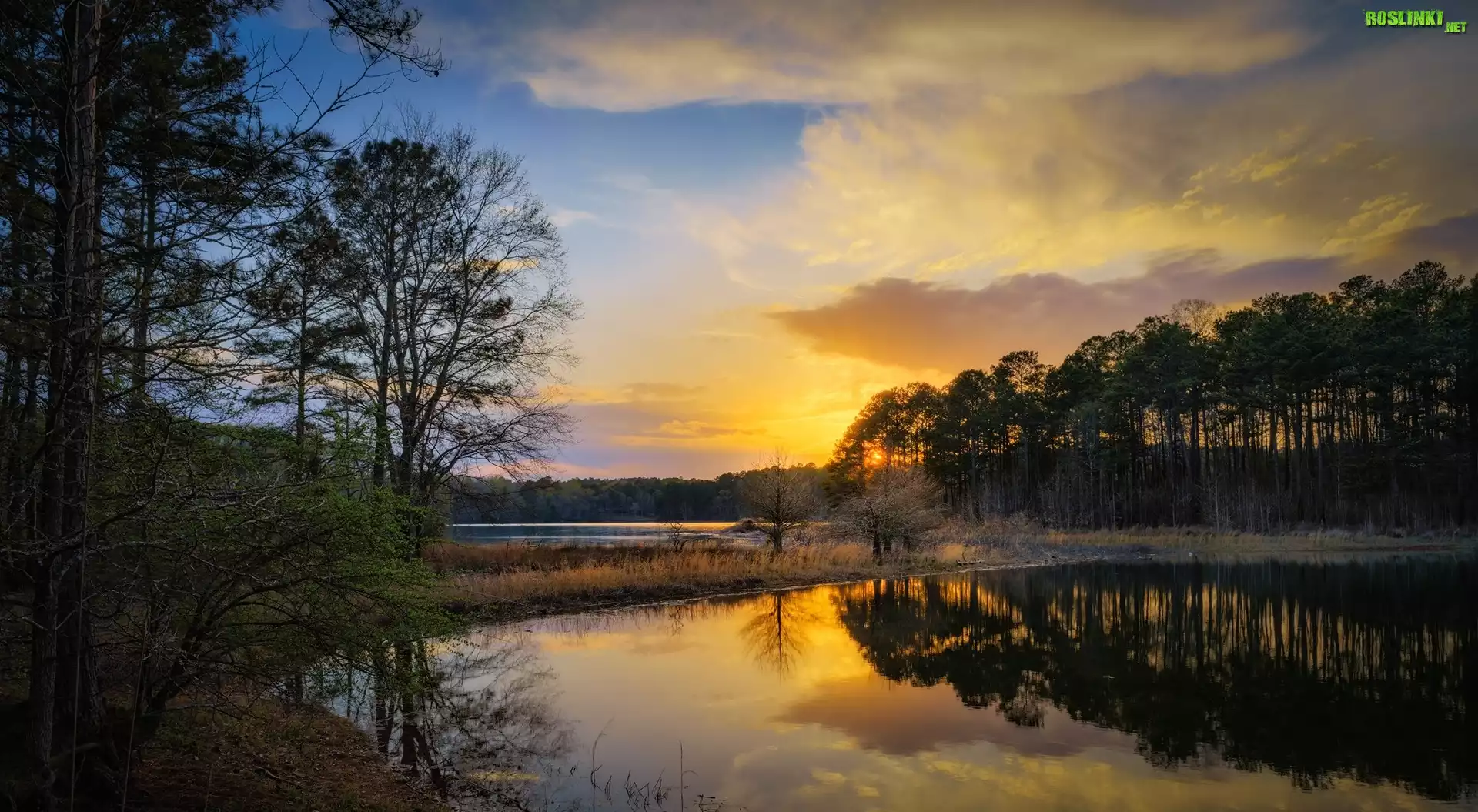 Rośliny: Stany Zjednoczone, Jezioro West Point Lake, Zachód słońca, Odbicie Drzewa, Las