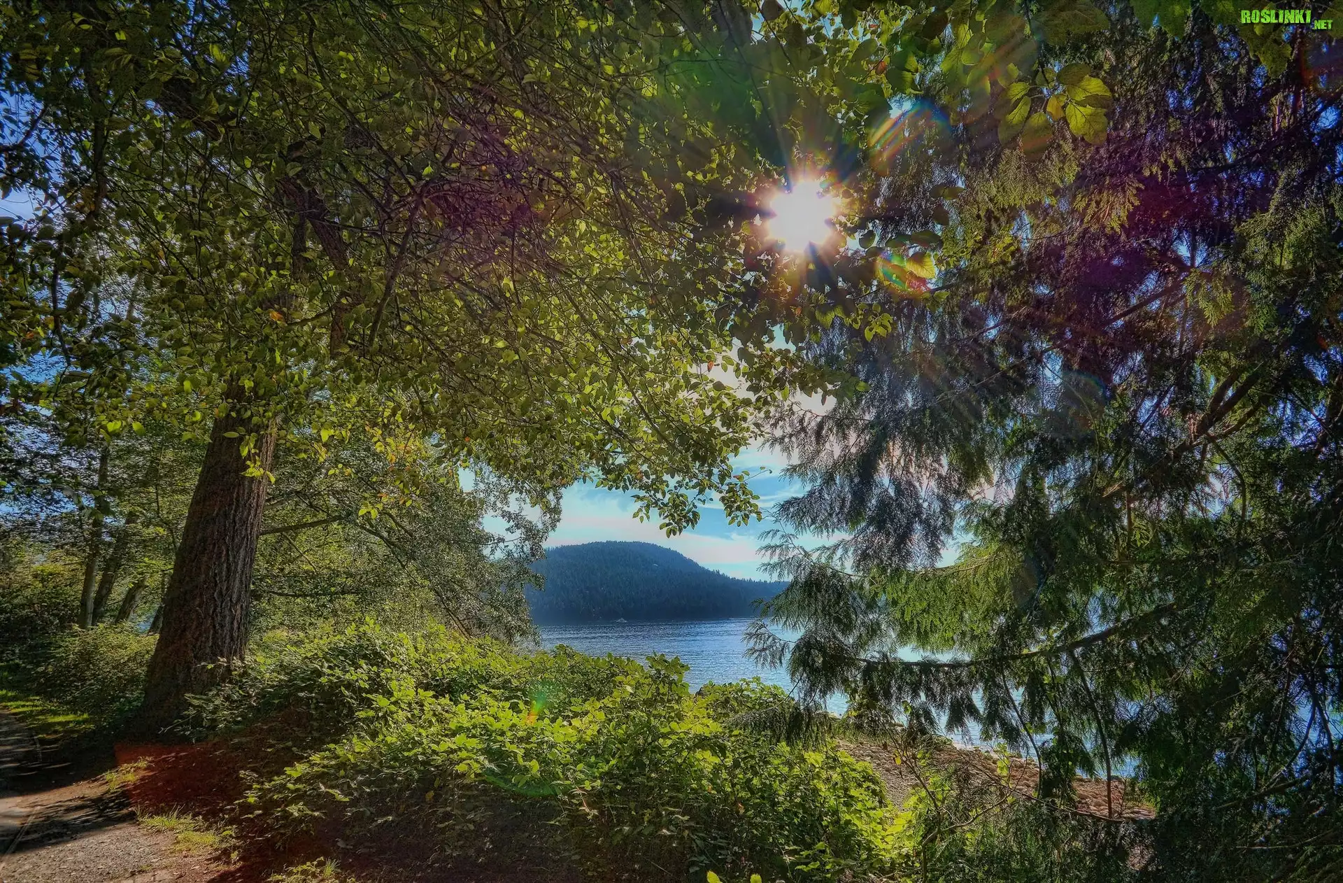 Rośliny: Jezioro, Drzewa, Promienie, Słońca