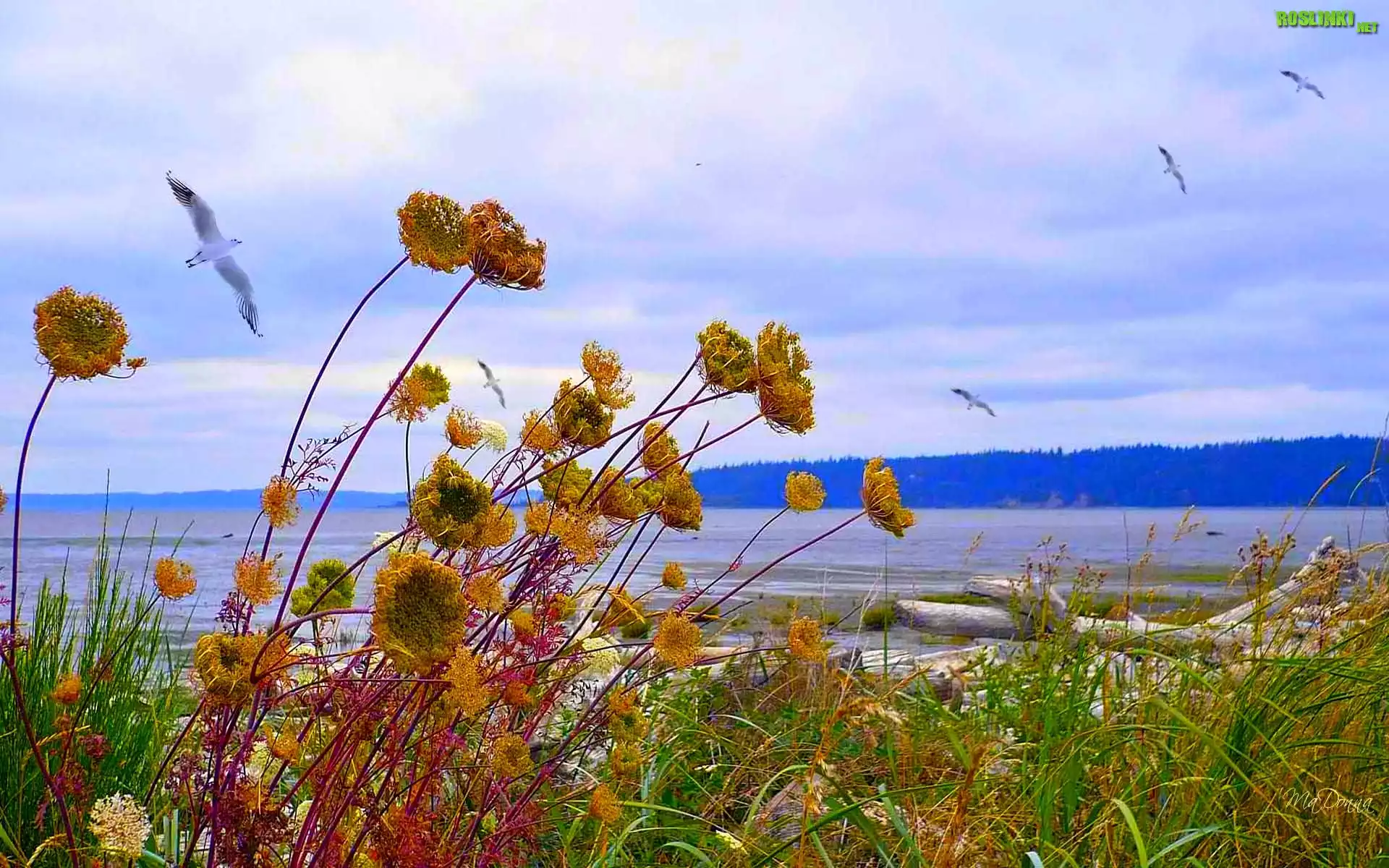 Rośliny: Jezioro, Trawy, Lasy, Góry, Ptaki, Lato