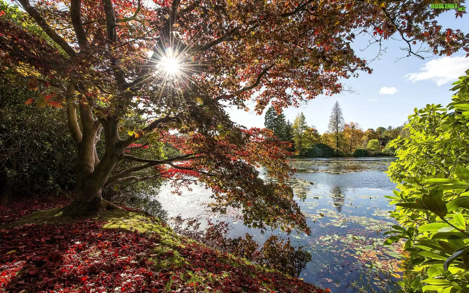 Rośliny: Jezioro, Drzewa, Liście, Promienie, Słońca, Jesień