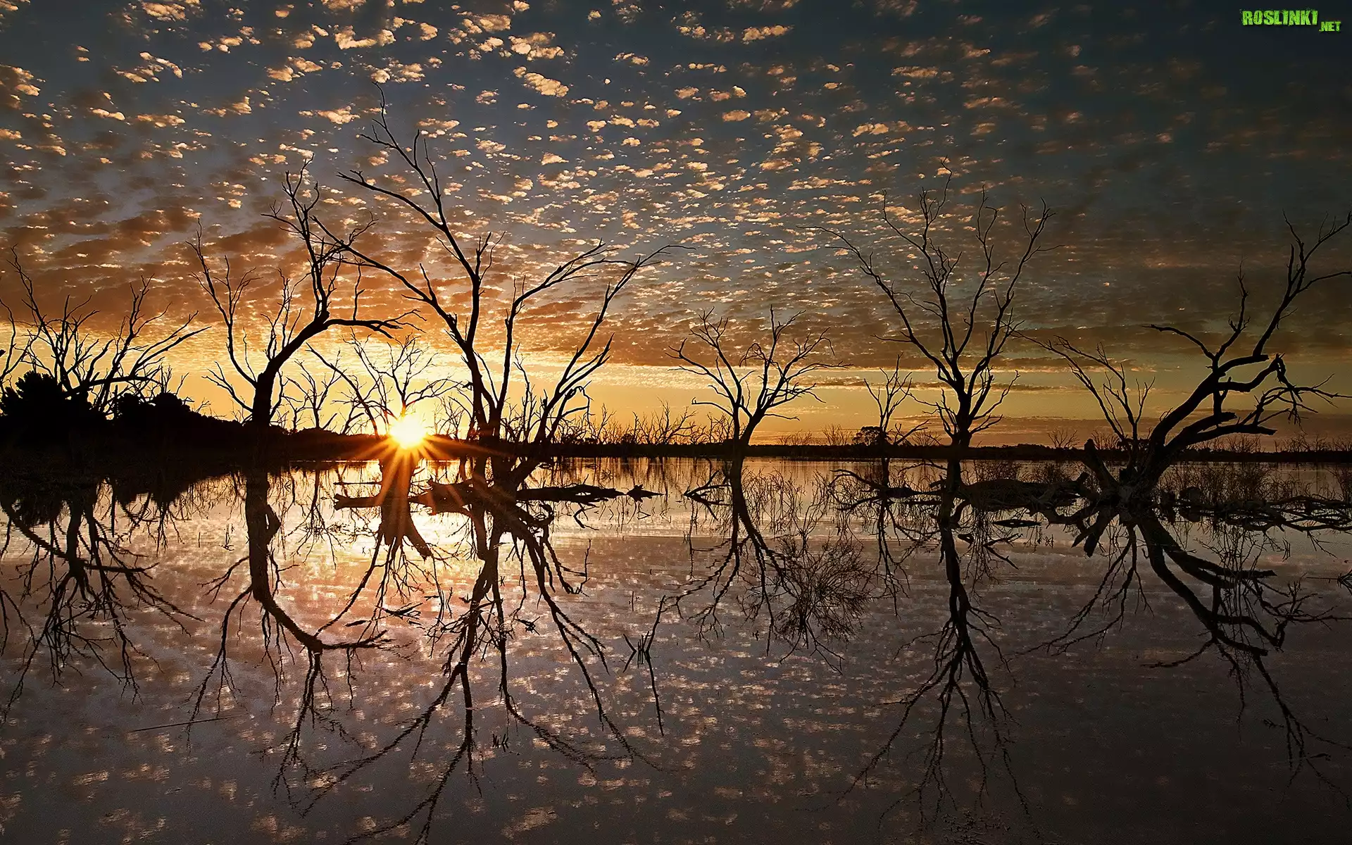 Rośliny: Jezioro, Drzewa, Promienie, Słońca, Odbicie