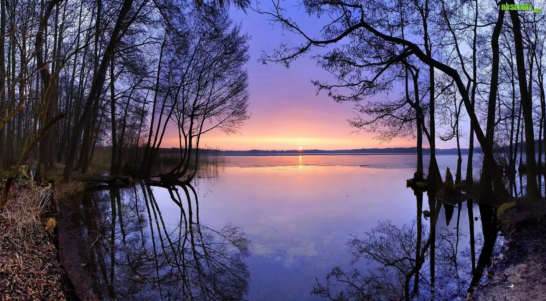 Rośliny: Jezioro, Zachód, Słońca, Drzewa