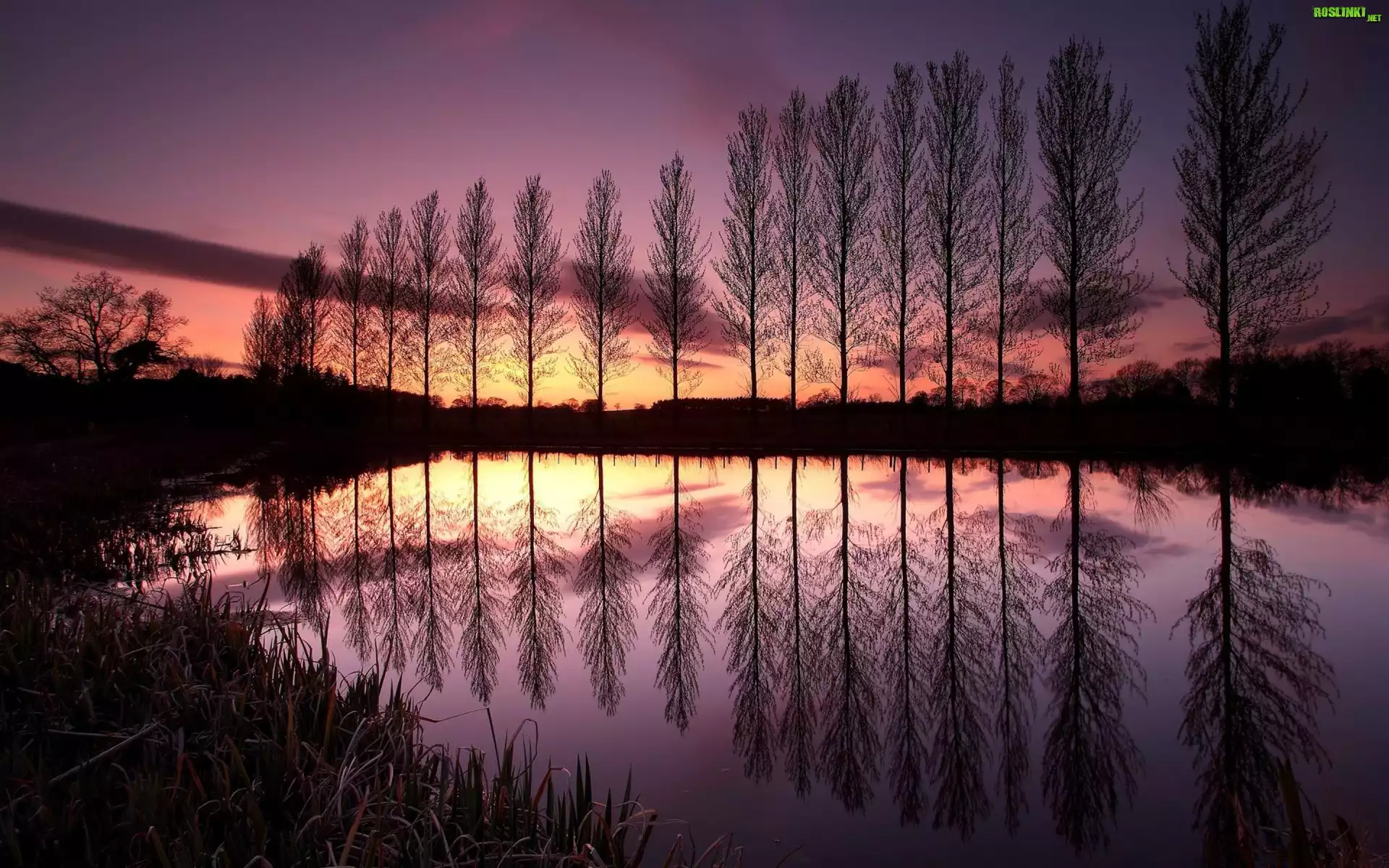 Rośliny: Jezioro, Drzewa, Zachód Słońca, Odbicie