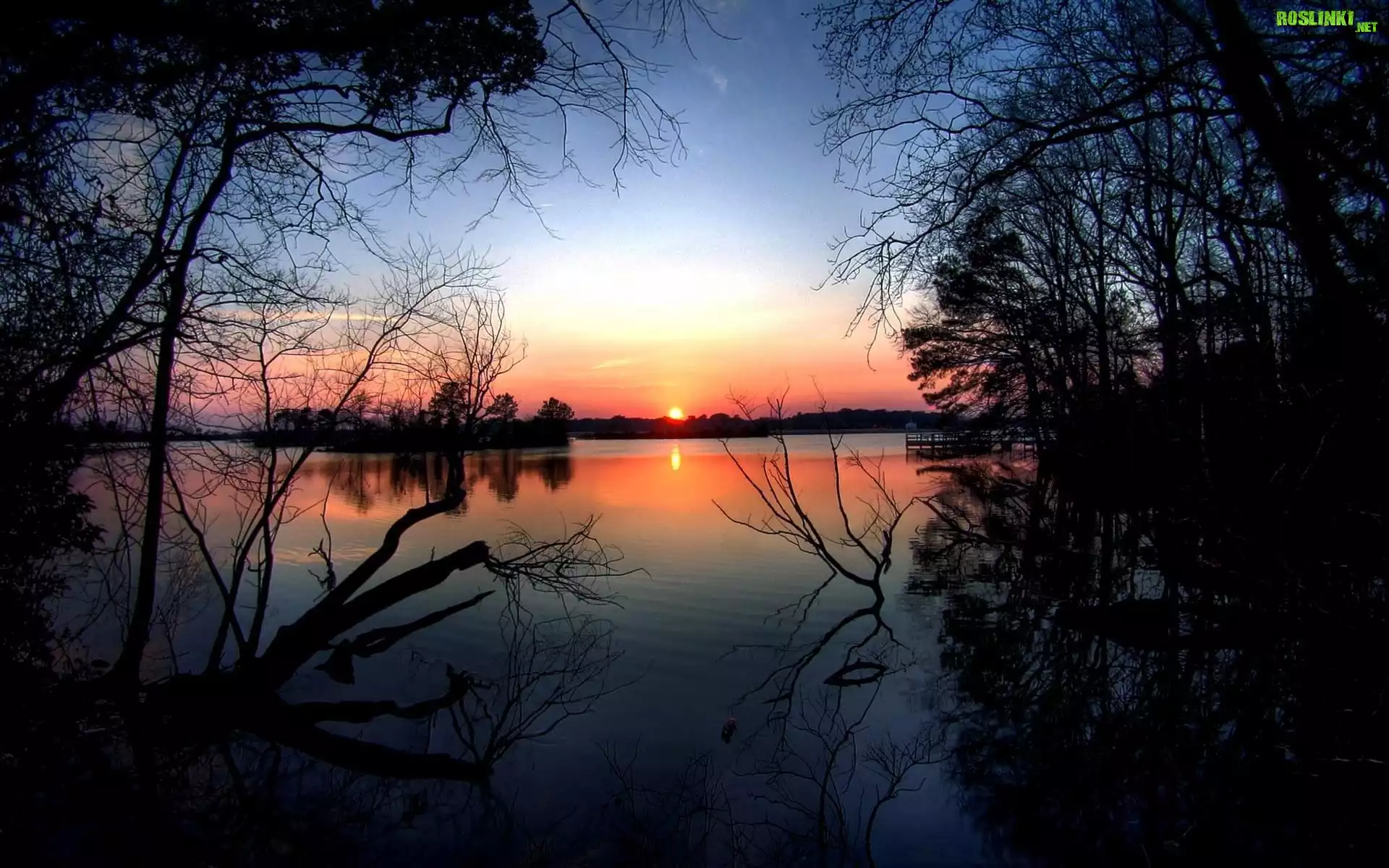 Rośliny: Jezioro, Zachód, Słońca, Drzewa